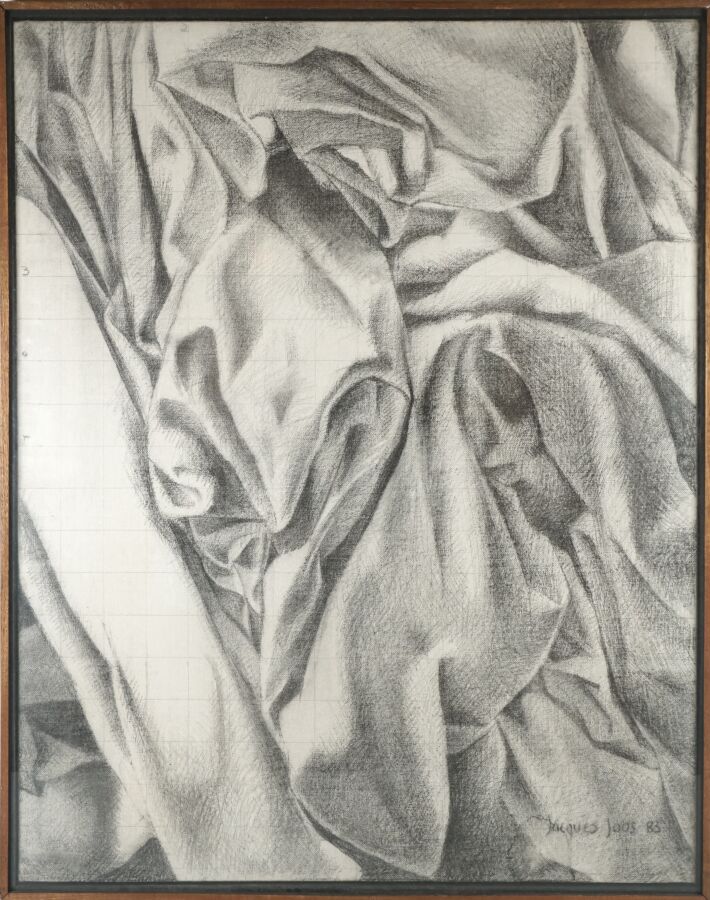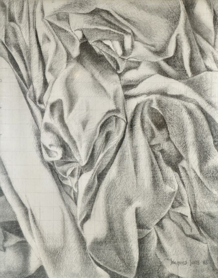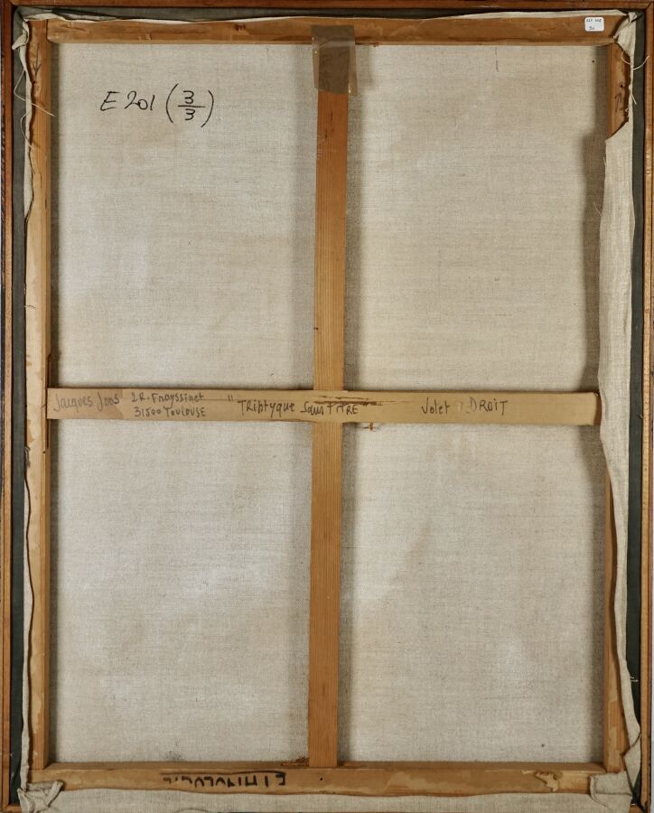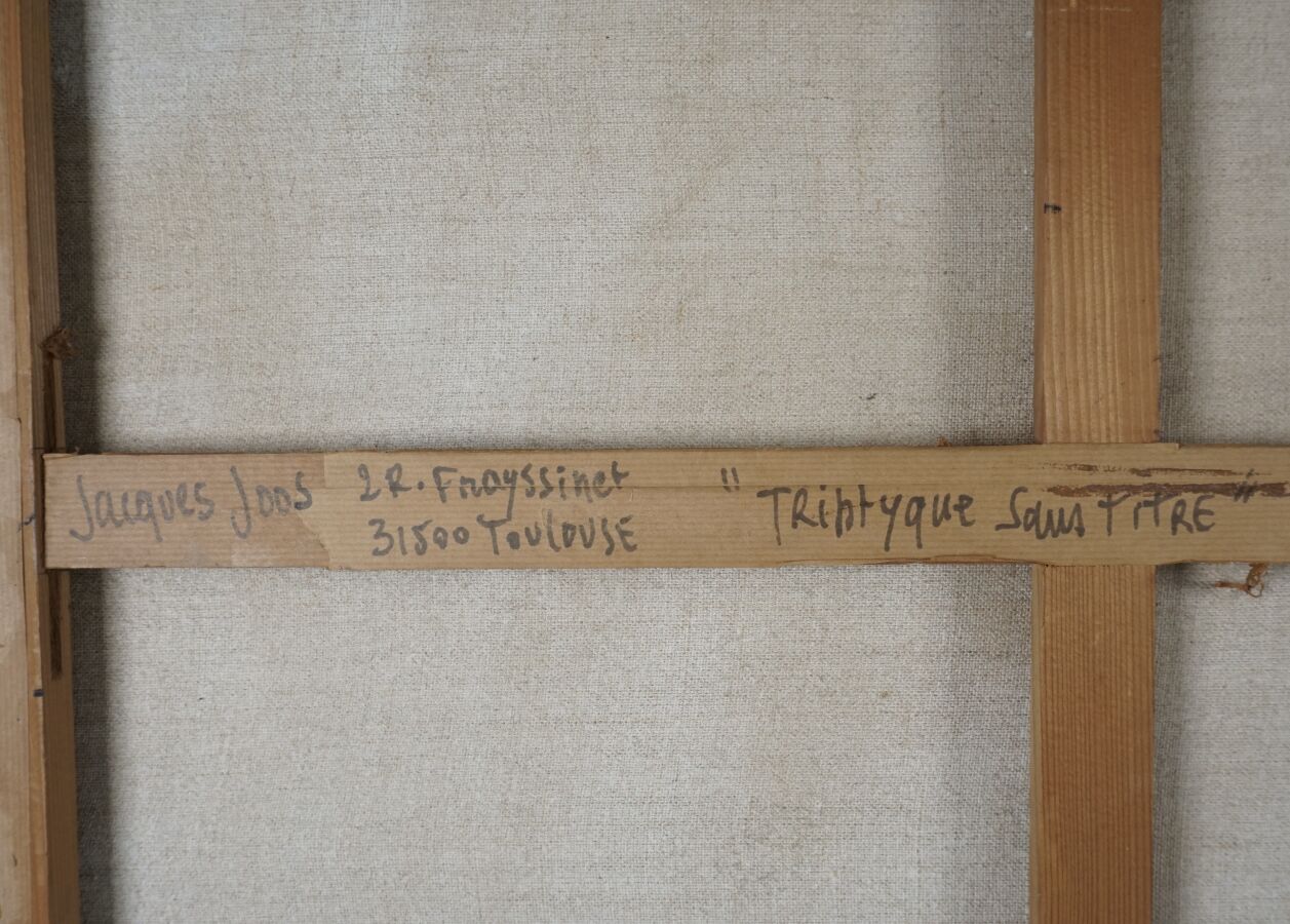 Jacques JOOS (1945-2021), "Triptyque sans titre", 1983, fusain sur toile, signé et daté en bas à droite, signé et titré au dos, 92 x 73 cm.