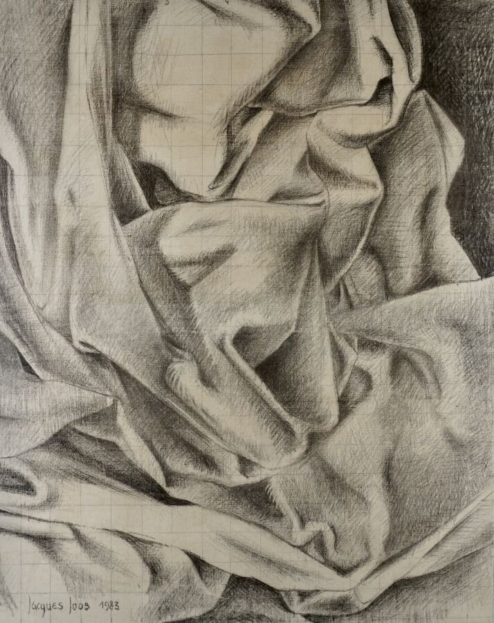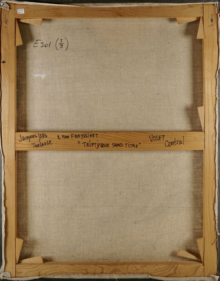 Jacques JOOS (1945-2021), "Triptyque sans titre - volet central", 1983, technique mixte sur toile, signée, datée en bas à gauche, signée, titrée et située au dos, 92 x 73 cm (manques, trous).