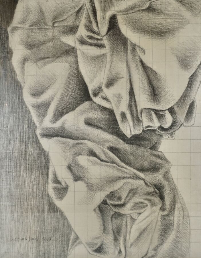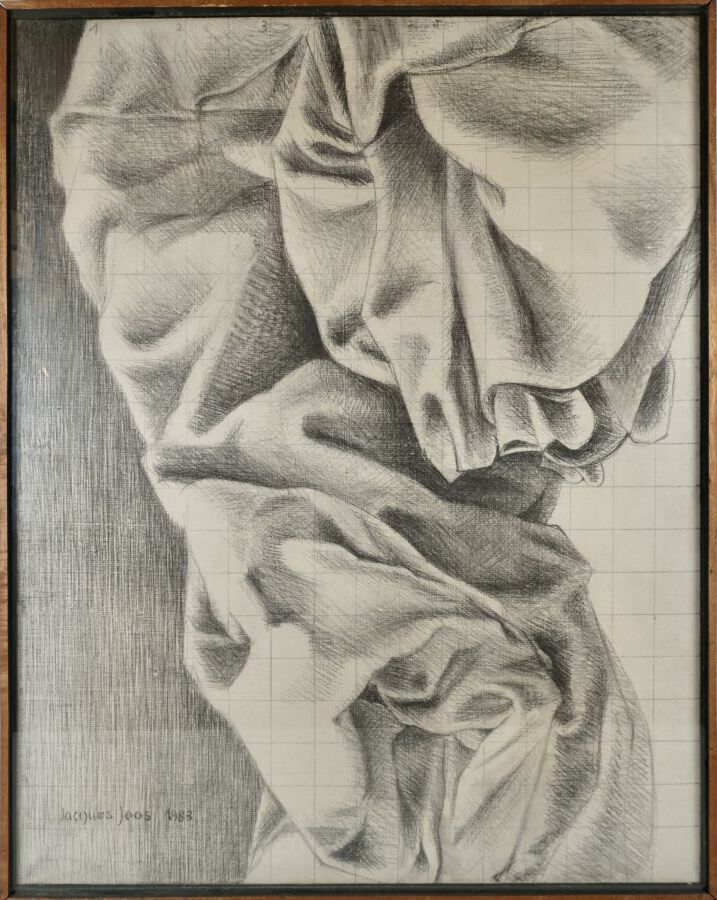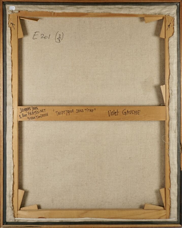 Jacques JOOS (1945-2021), "Triptyque sans titre - volet gauche", 1983, fusain sur papier, signé et daté en bas à gauche, signé, titré, situé au dos, 92 x 73 cm.
