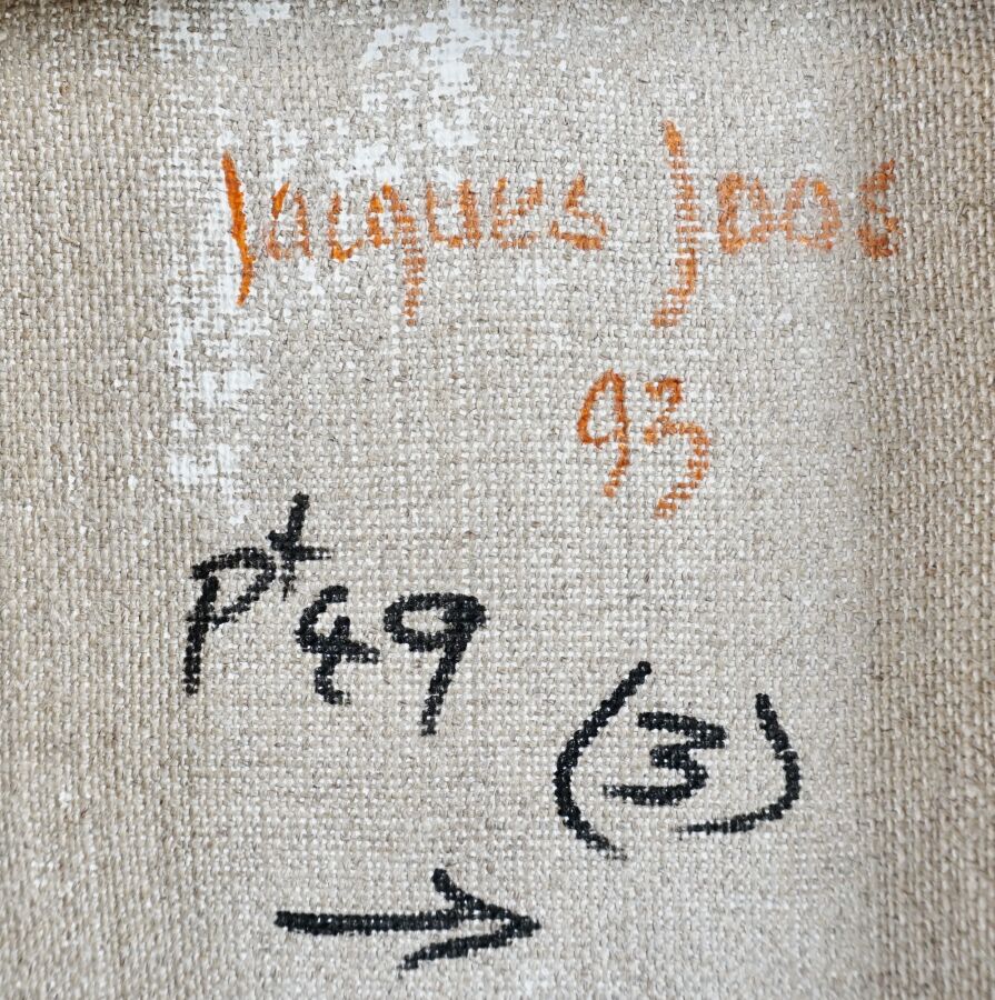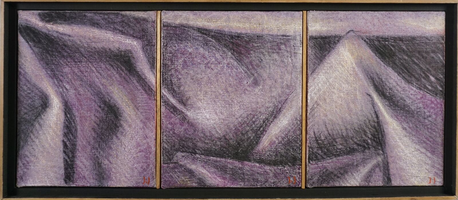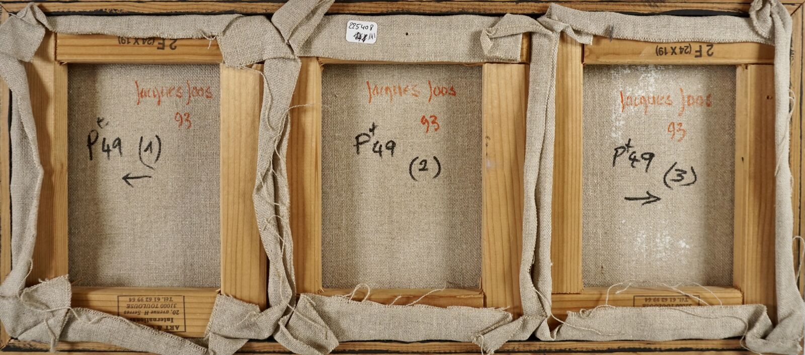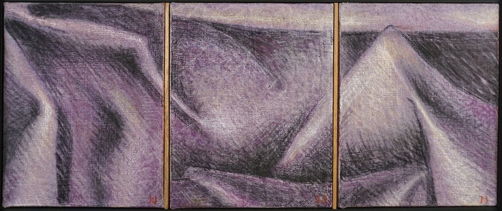 Jacques JOOS (1945-2021), "Triptyque violet", 1993, technique mixte sur toile, monogrammée en bas à droite, signée et datée au dos, 58 x 24 cm.
