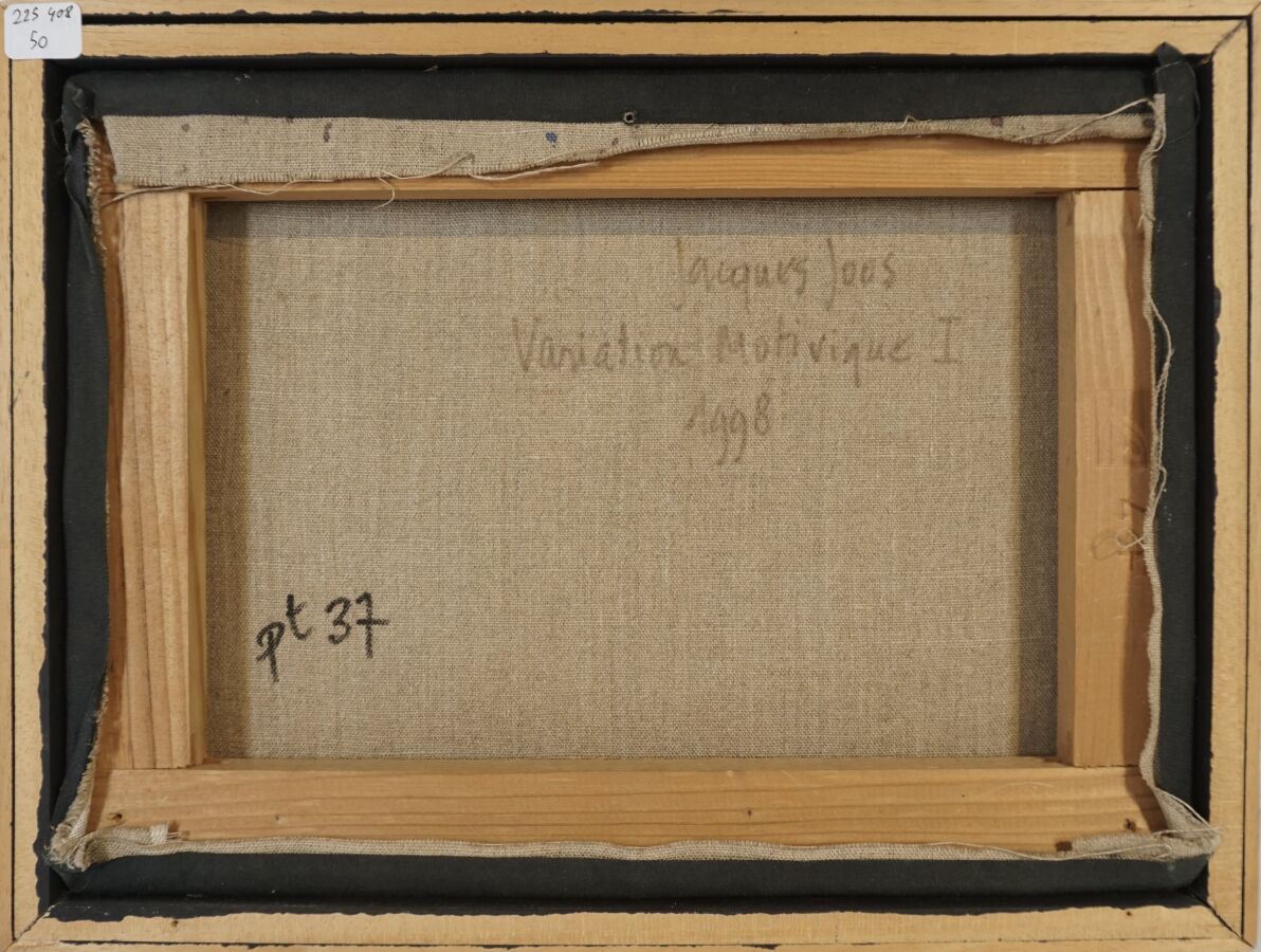 Jacques JOOS (1945-2021), "Variation Motivitique I", 1998, technique mixte sur toile, signée en bas à droite, signée, titrée et datée au dos, 24 x 33 cm.