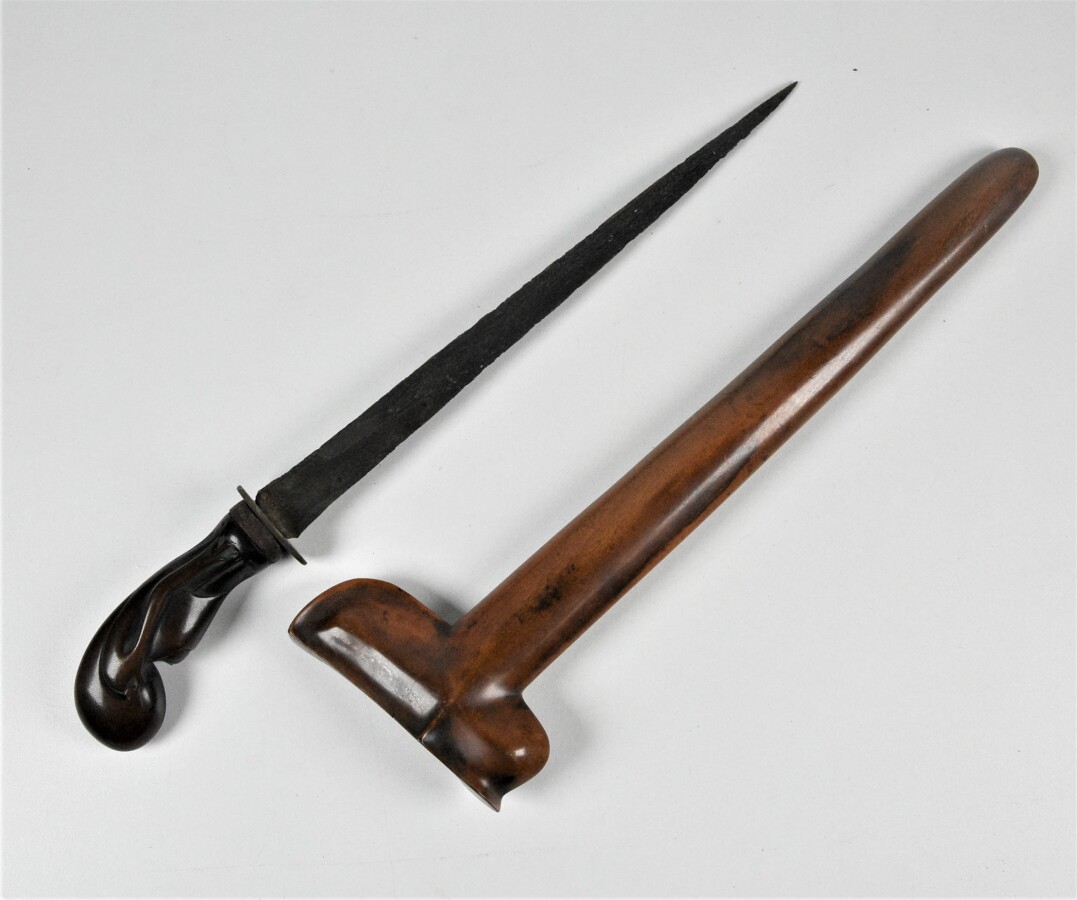 JAVA SUMATRA - Ensemble comprenant : POIGNARD et KRISS à lame droite, XXème, BE