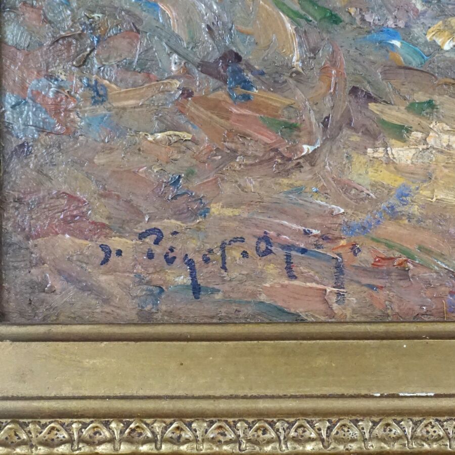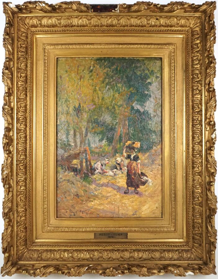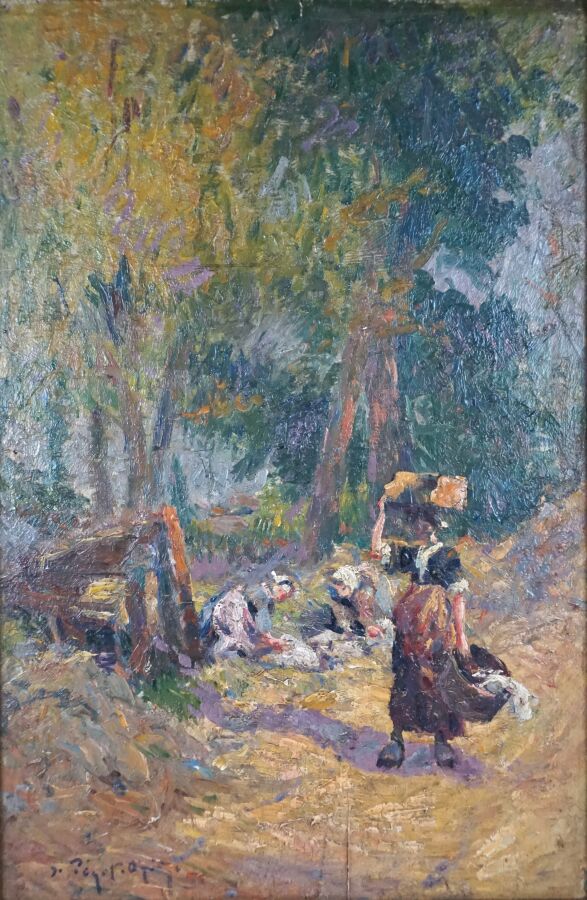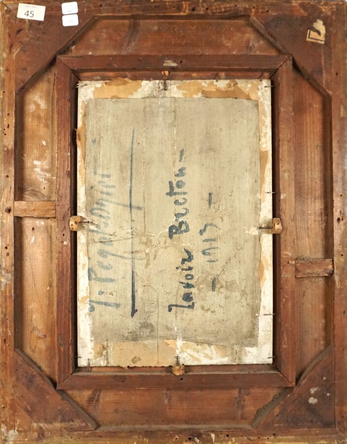 Jean-Bertrand PEGOT-OGIER (1877-1915), "Lavoir breton" 1913, huile sur toile signée en bas à gauche, contresignée, titrée et datée au dos, 42 x 27.5 cm (trous de punaises en bordure).
