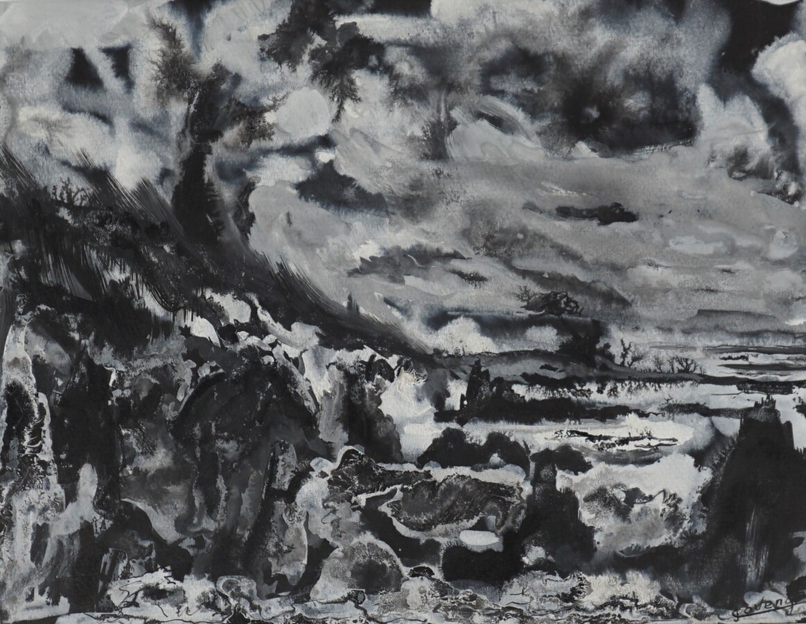 Jean CAVENG (1905-1993), "Le vent sur la côte bretonne", gouache sur papier, 24.5 x 31 cm.