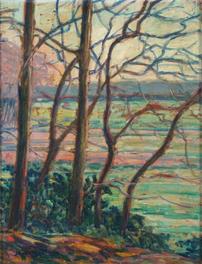 Jean COLLE (1875-1966), "Les Plomarc'h, soleil couchant" 1924, huile sur panneau, signée et datée en bas à gauche, 35 x 27 cm.