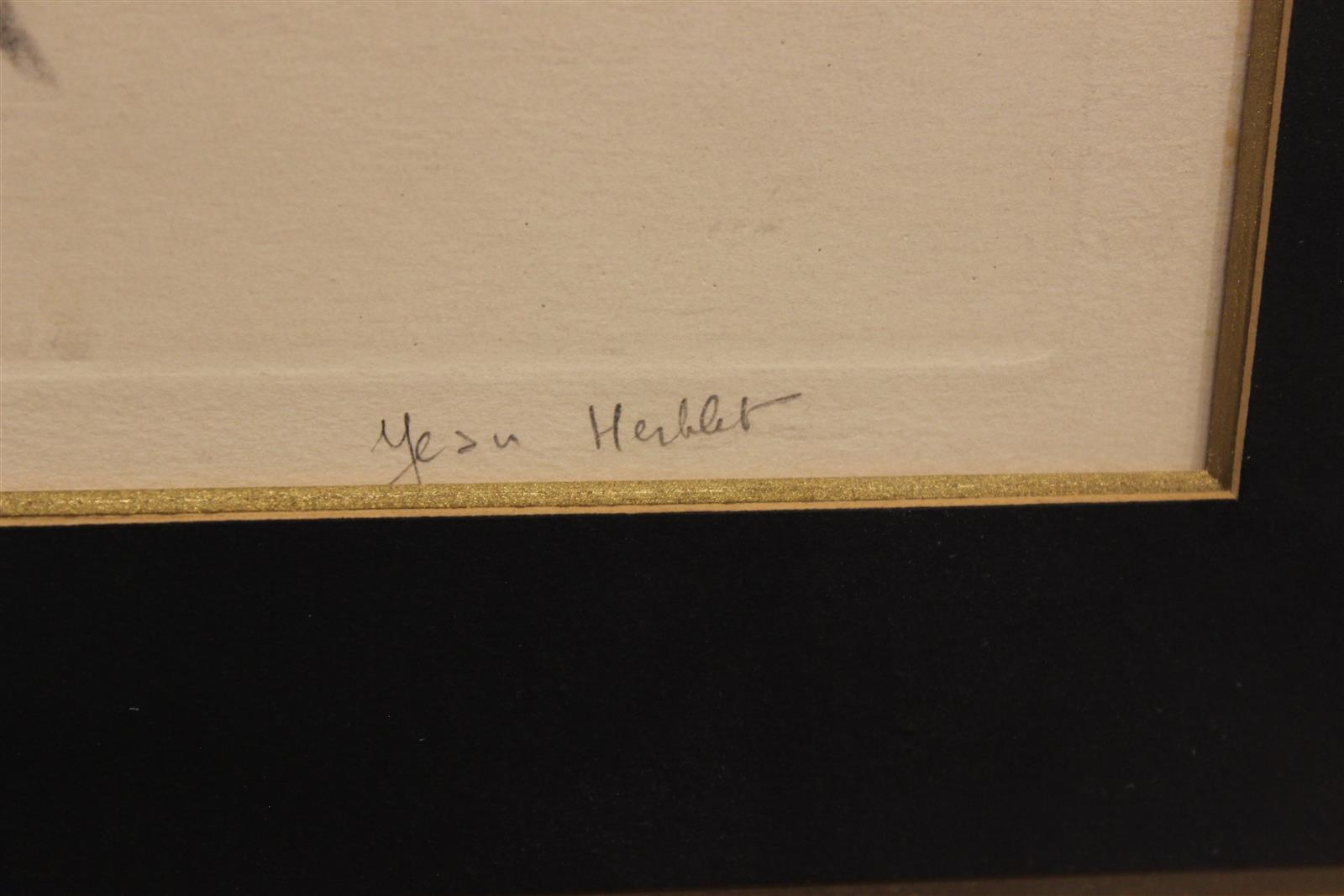Jean HERBLET (1893-1985), "Setter au canard", gravure en couleurs, signée en bas à droite dans la marge, 56 x 50 cm