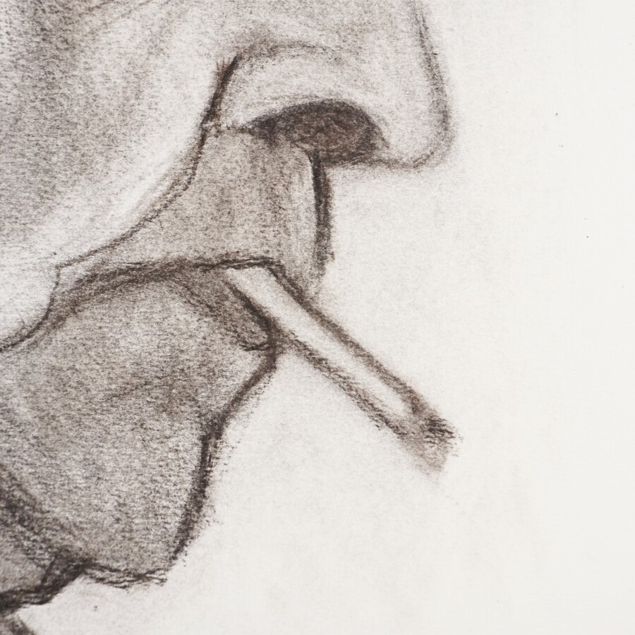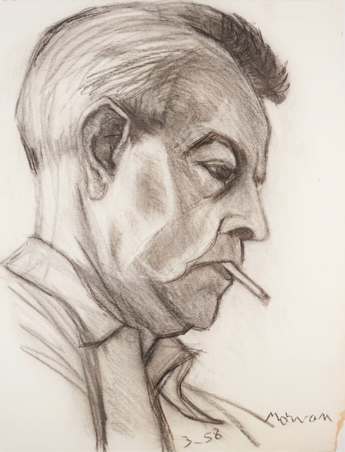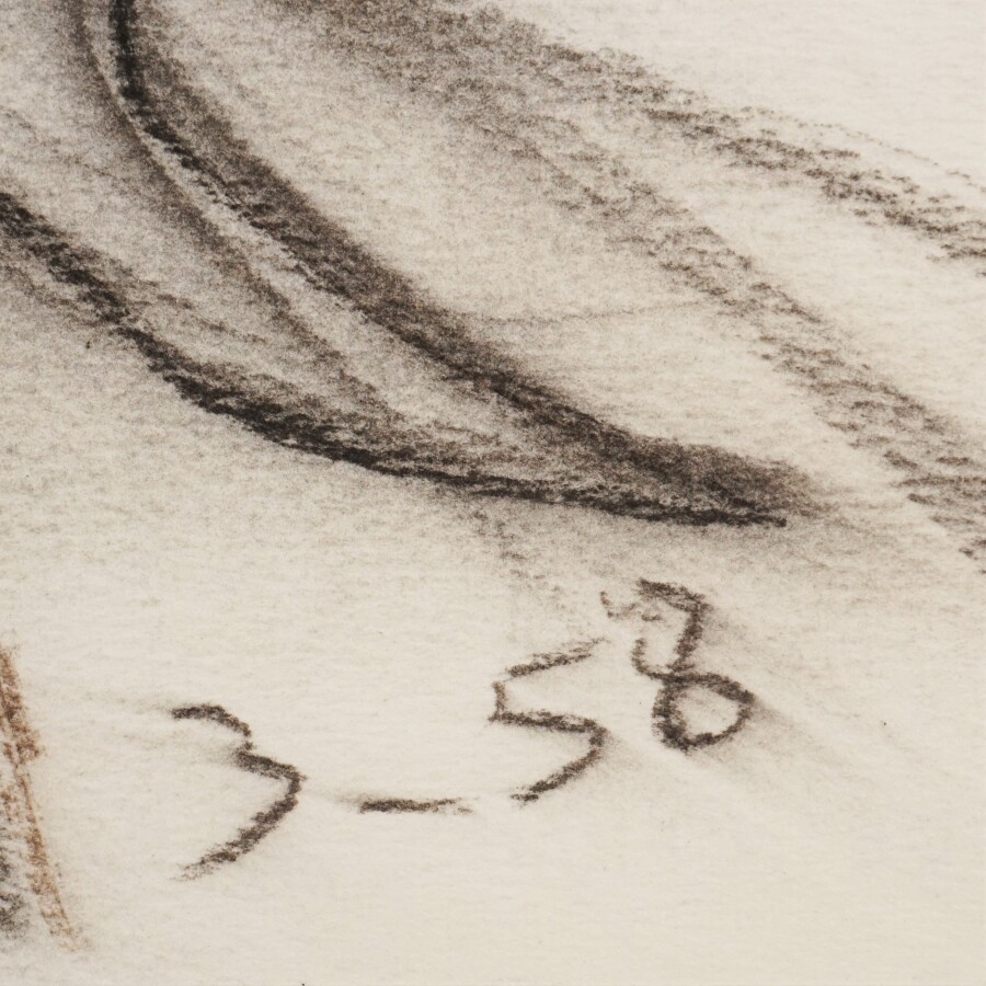 Jean-Jacques MORVAN (1928-2005), "L'homme à la cigarette" 3.58, dessin sur papier signé et daté en bas à droite, 65 x 49.5 cm (coin en bas à droite déchiré).