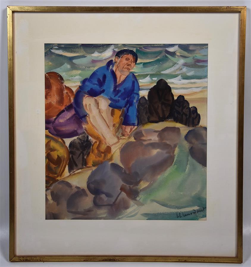 Jean Julien LEMORDANT (1878/82-1968), "Pêcheur près des rochers", aquarelle sur papier, signée en bas à droite, 33 x 20 cm