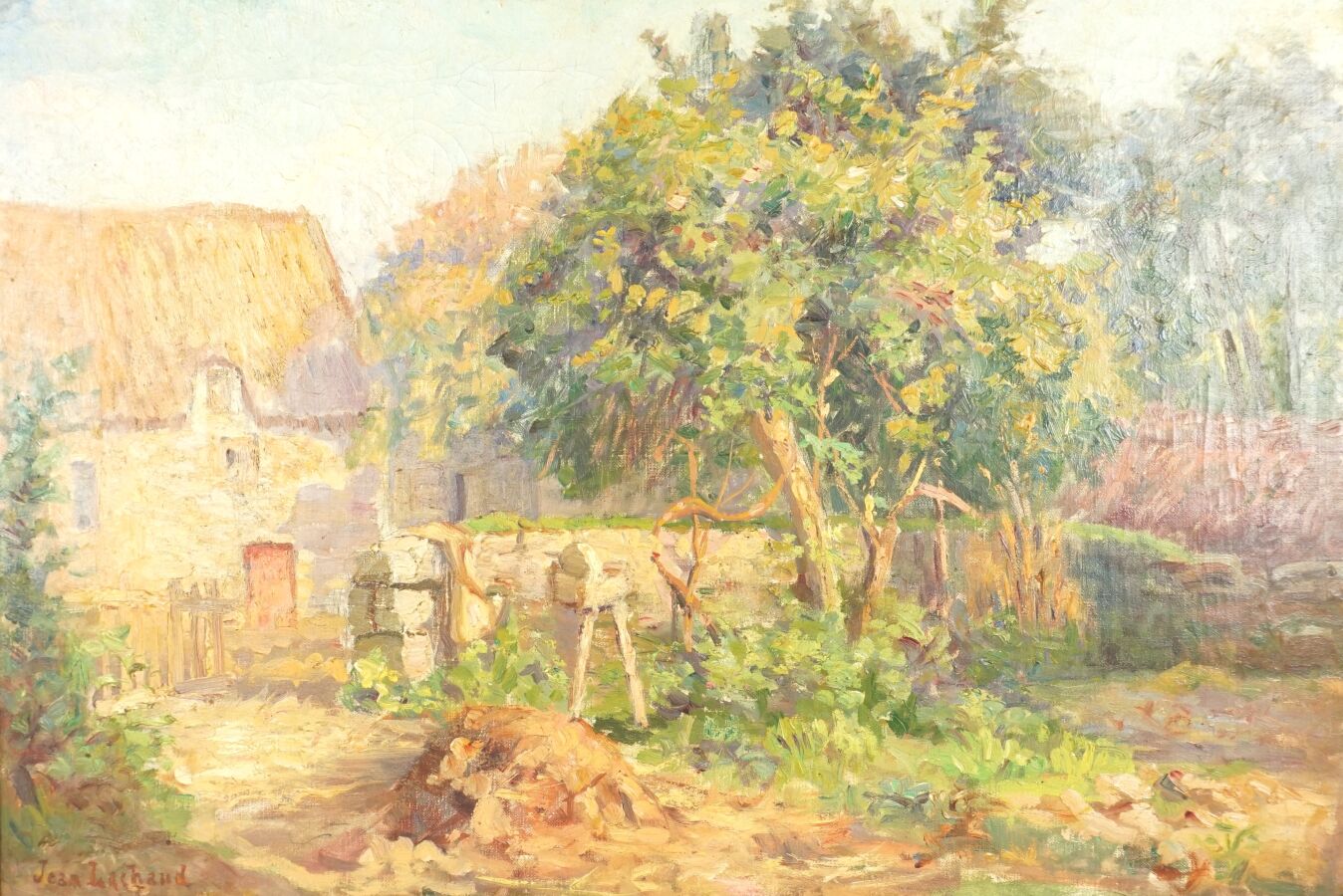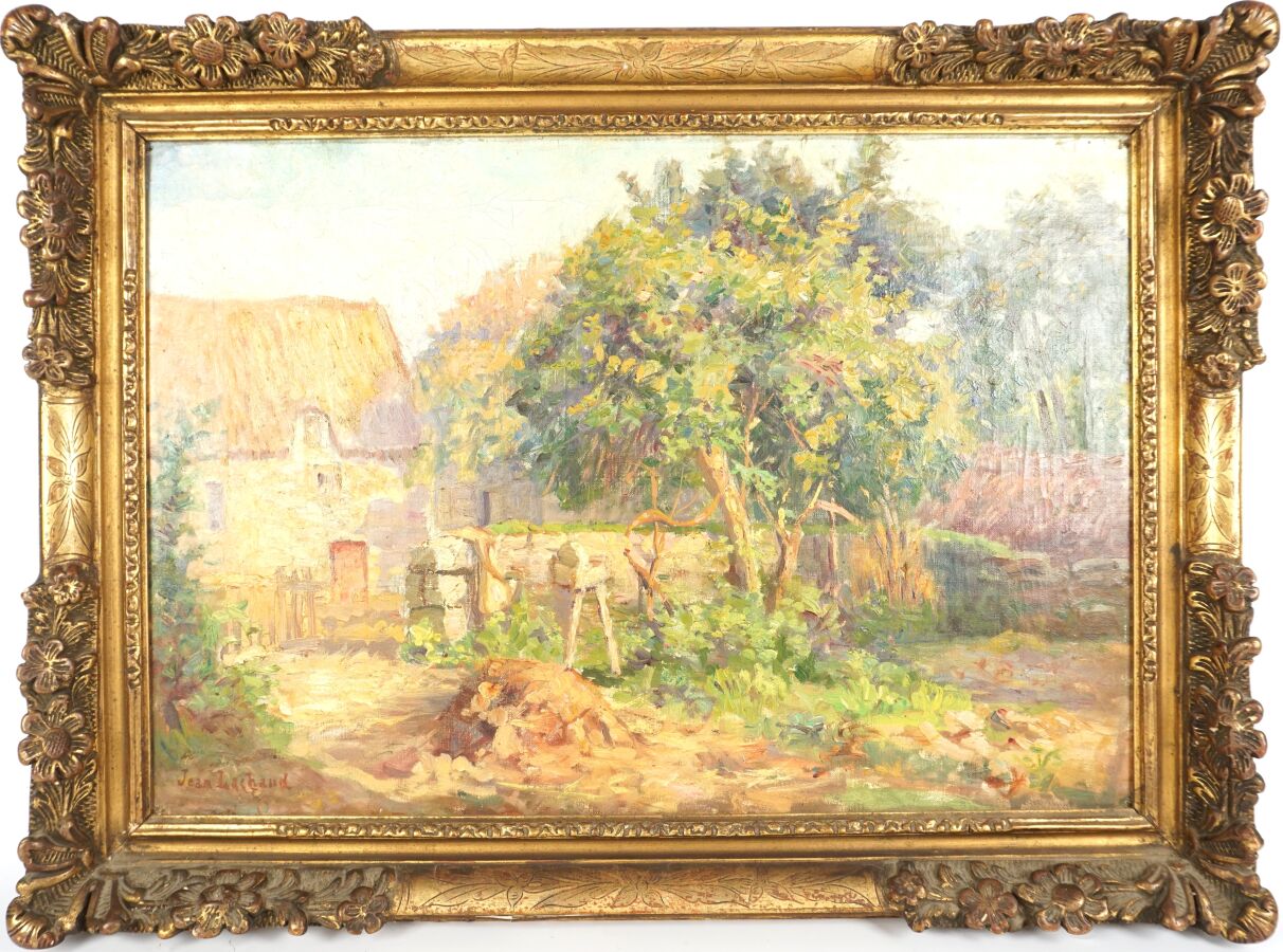 Jean LACHAUD (1882-1952), "La ferme" 1910, huile sur toile signée et datée en bas à gauche, 38 x 55 cm (trous de punaises aux angles).