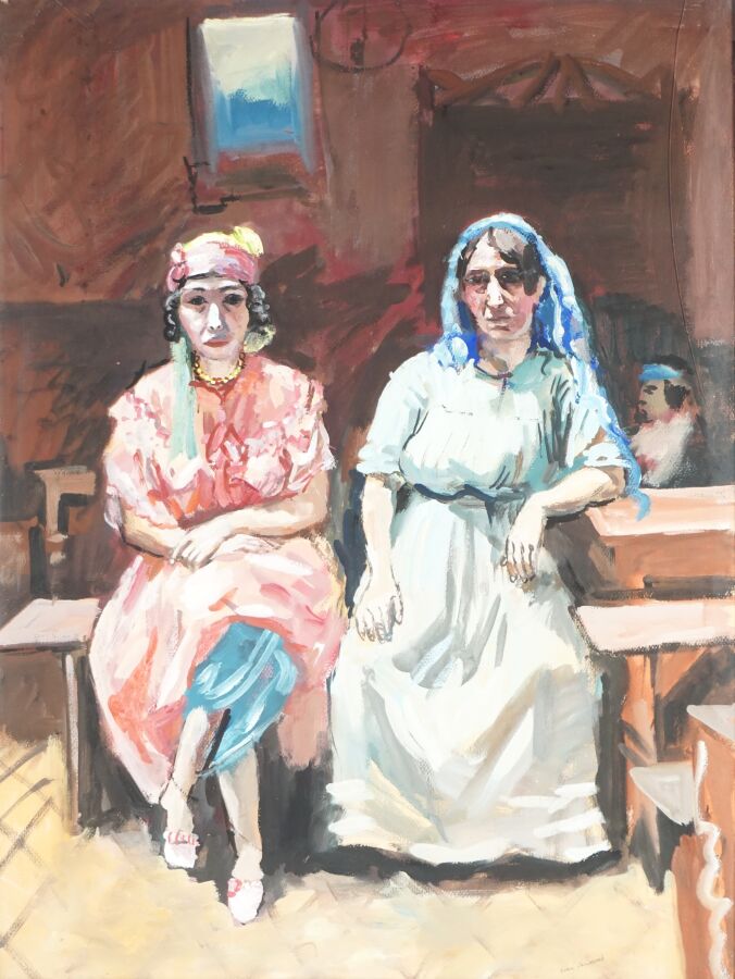 Jean LAUNOIS (1898-1942), "Mère et fille d'Alger", gouache signée en bas à droite, 61 x 46 cm (vitre cassée).