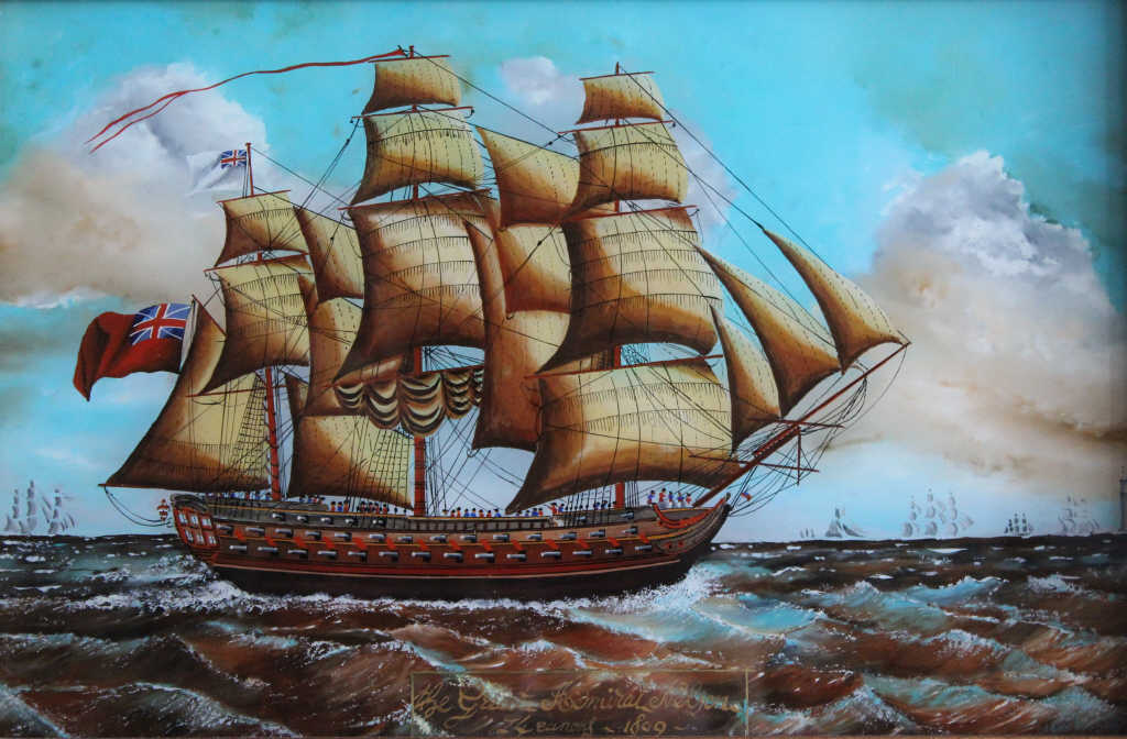 Jean LE GOFF (1925), "The Great Admiral Nelson, 74 canons, 1809" 1996, fixé sous verre signé et daté en bas à droite, 26 x 39,5 cm