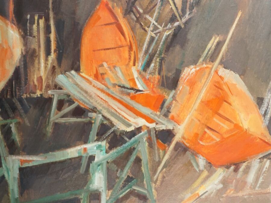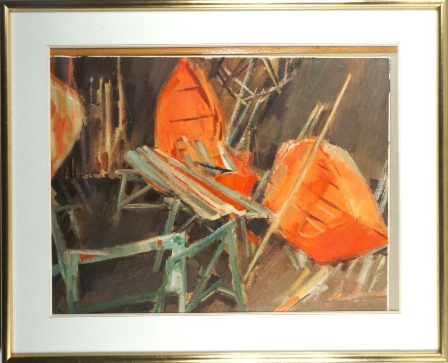 Jean LE MERDY (1928 - 2015), "Barques", gouache sur papier, 47 x 61.5 cm (à vue).