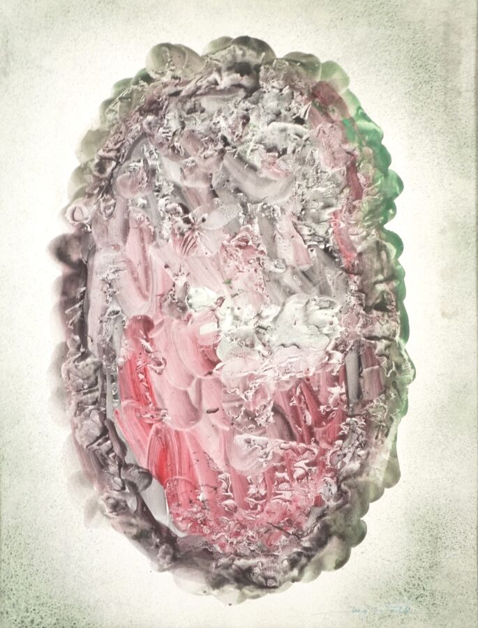 Jean LE PELCH (1921-1996), "Composition en vert et rose", aquarelle sur carton, signée en bas à droite, 65 x 50 cm.