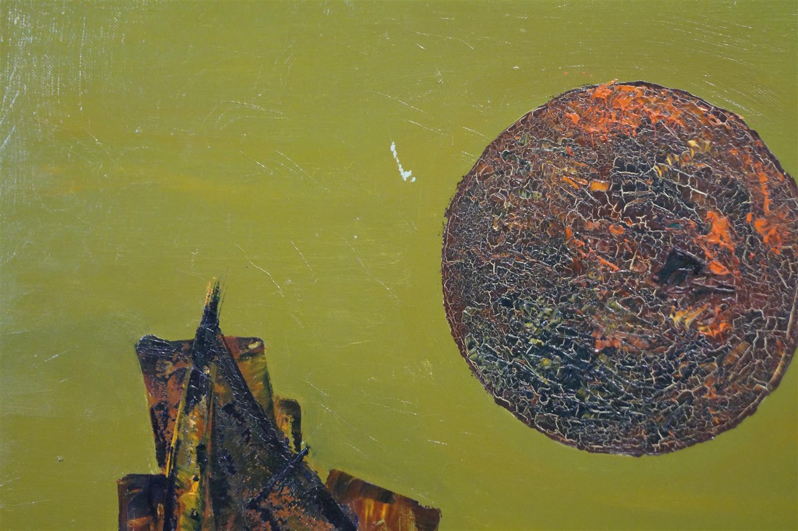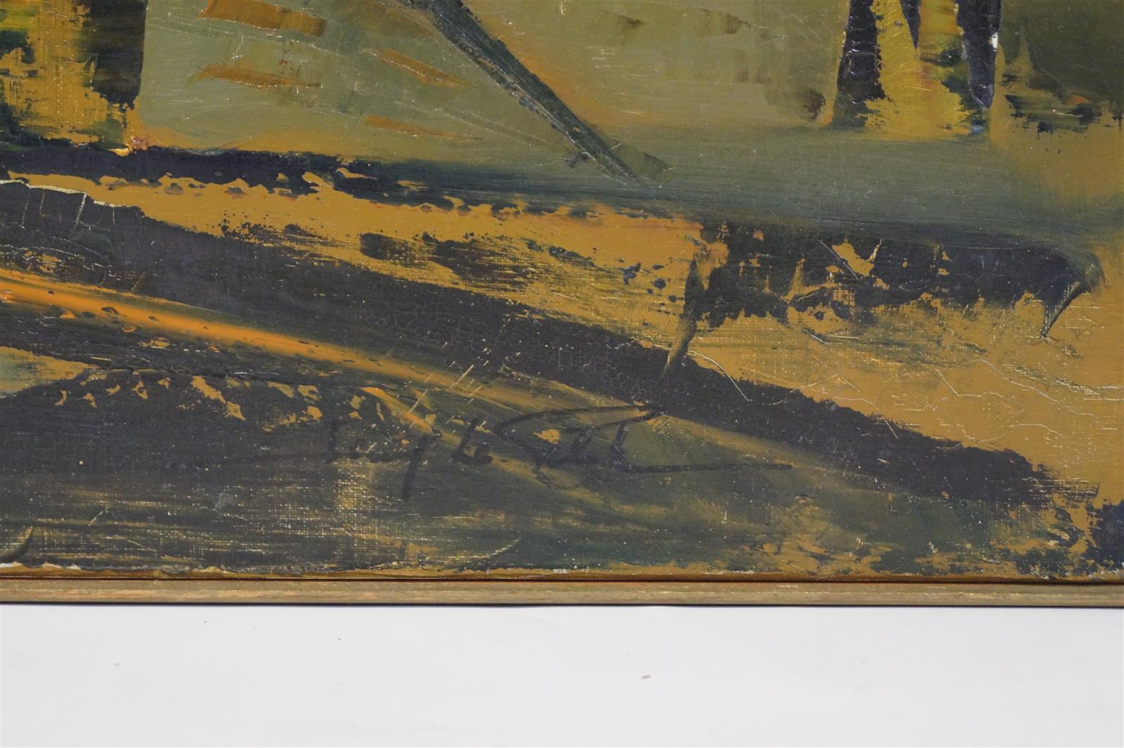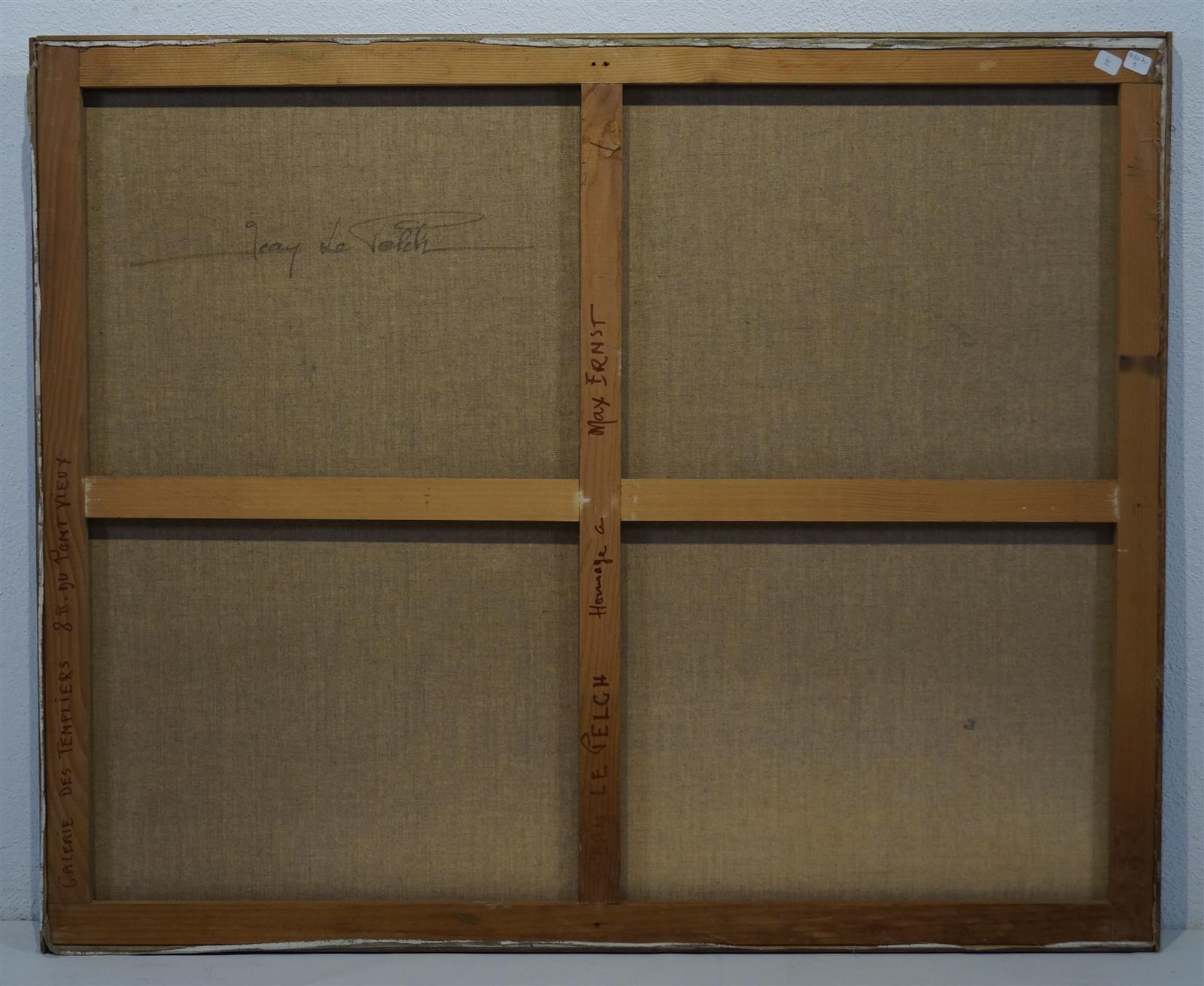 Jean LE PELCH (XXe), "Hommage à Max Ernst", huile sur toile signée en bas à droite, contresignée et titrée au dos, 84 x 100 cm (manque).