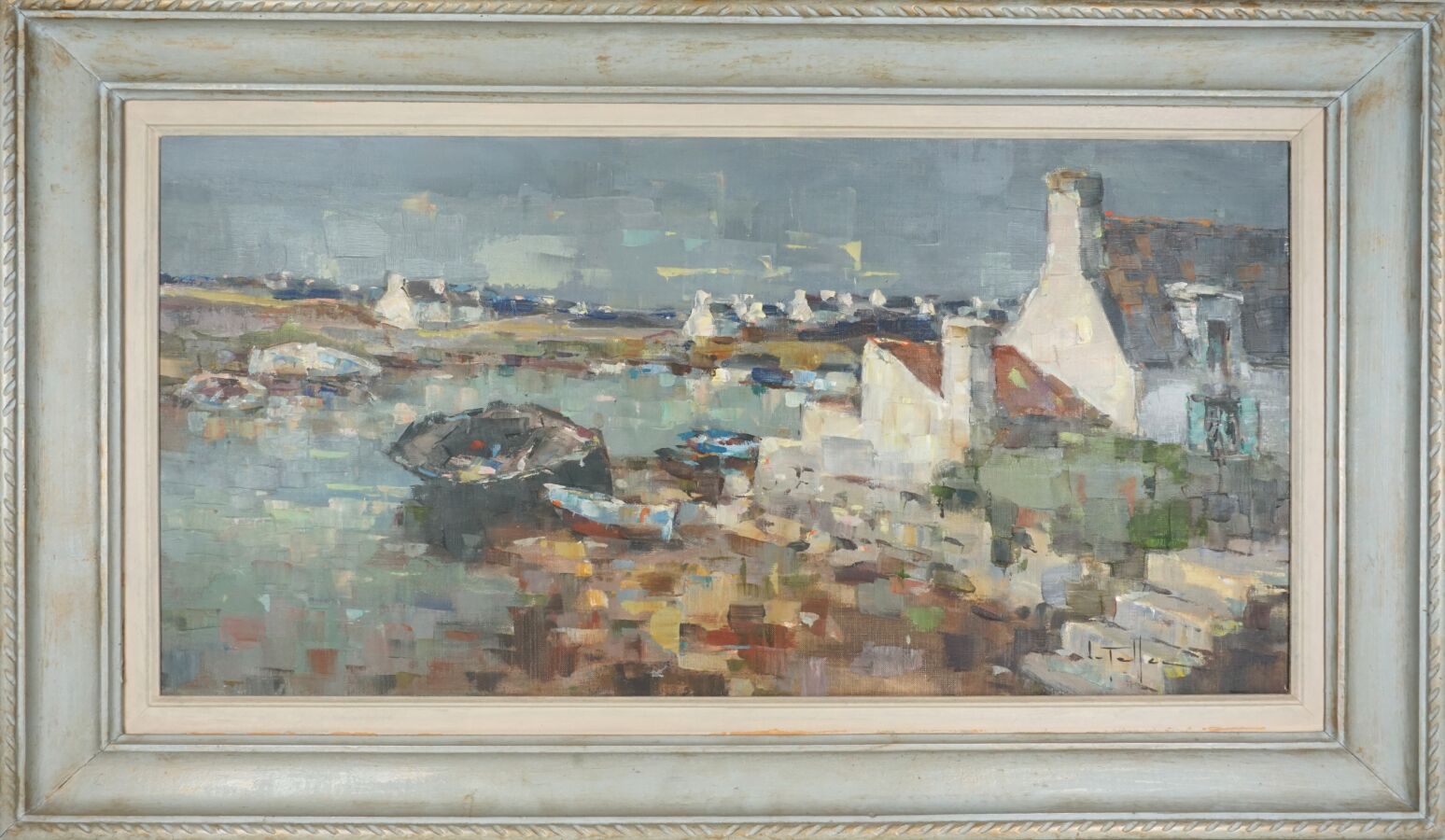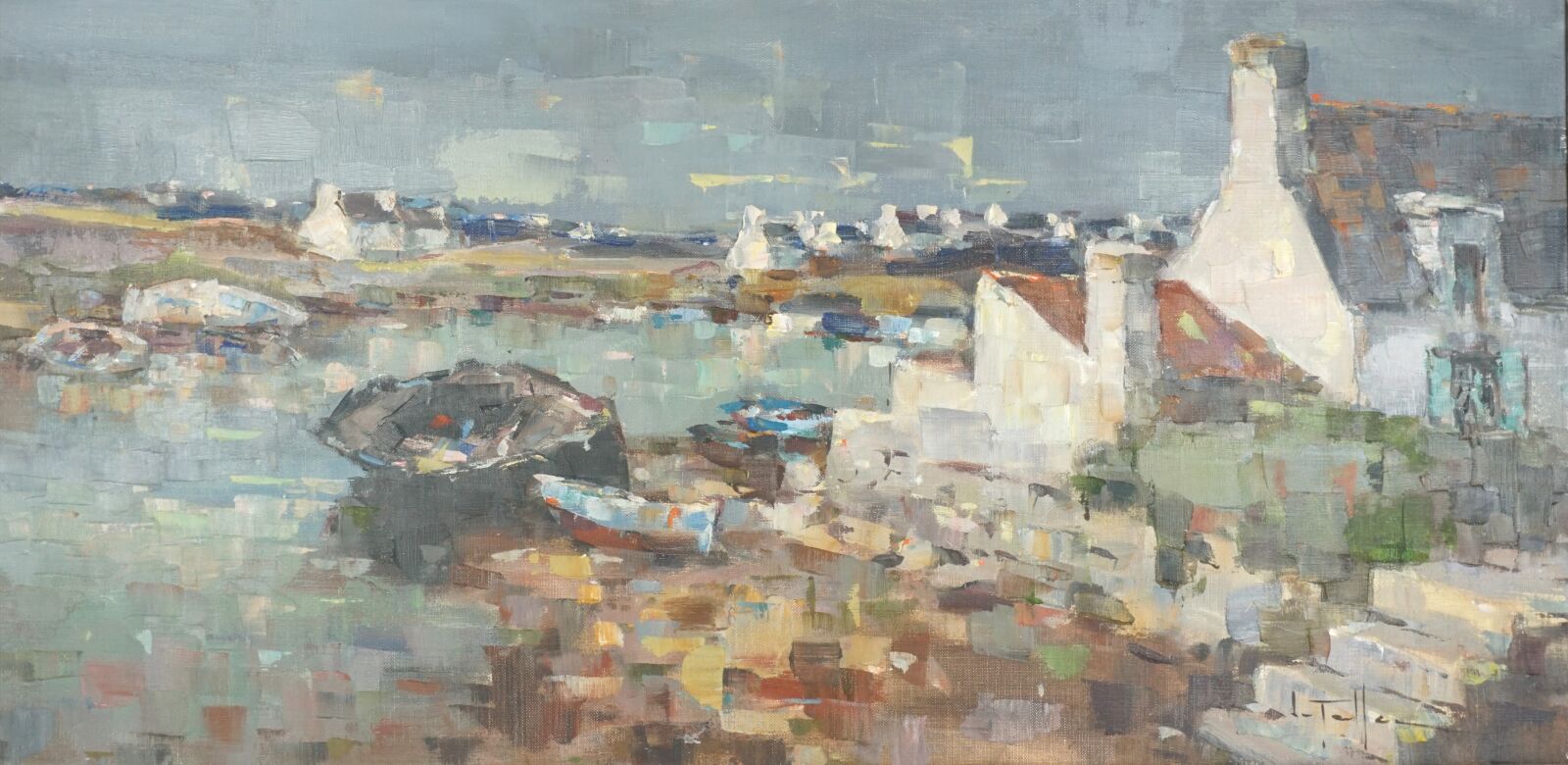 Jean-Louis LE TOULLEC (1908-1999), "Barque", huile sur toile signée en bas à droite, 40 x 80 cm.