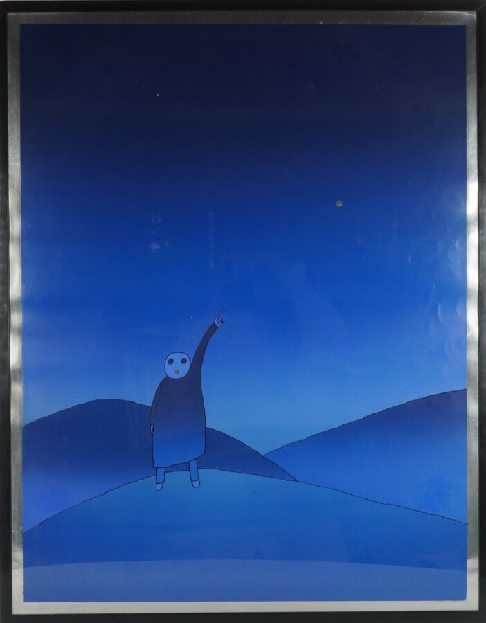 Jean-Michel FOLON (1934-2005), "Le silence", sérigraphie en couleurs sur fond argenté, signée et dédicacée en bas à gauche, Dim. 68.5 x 53 cm.