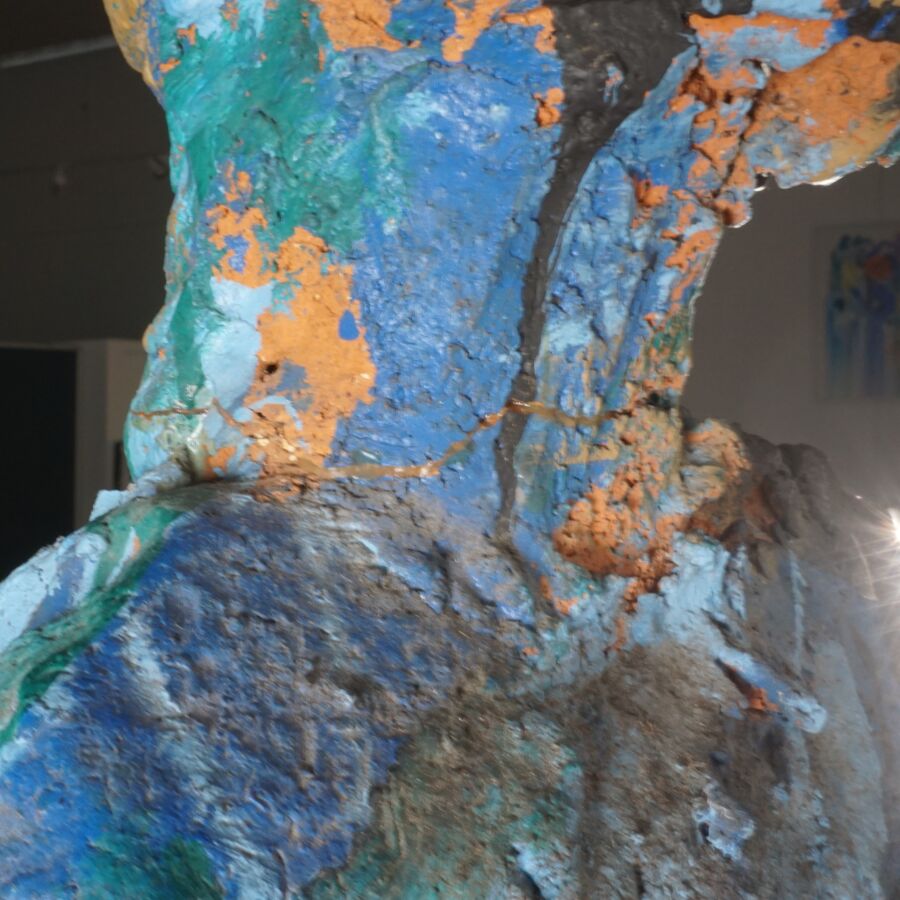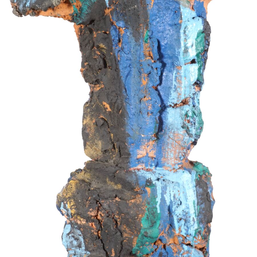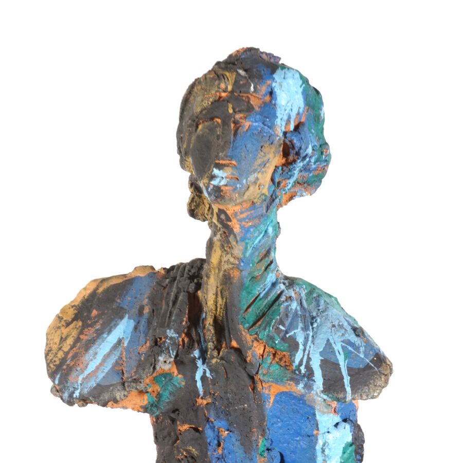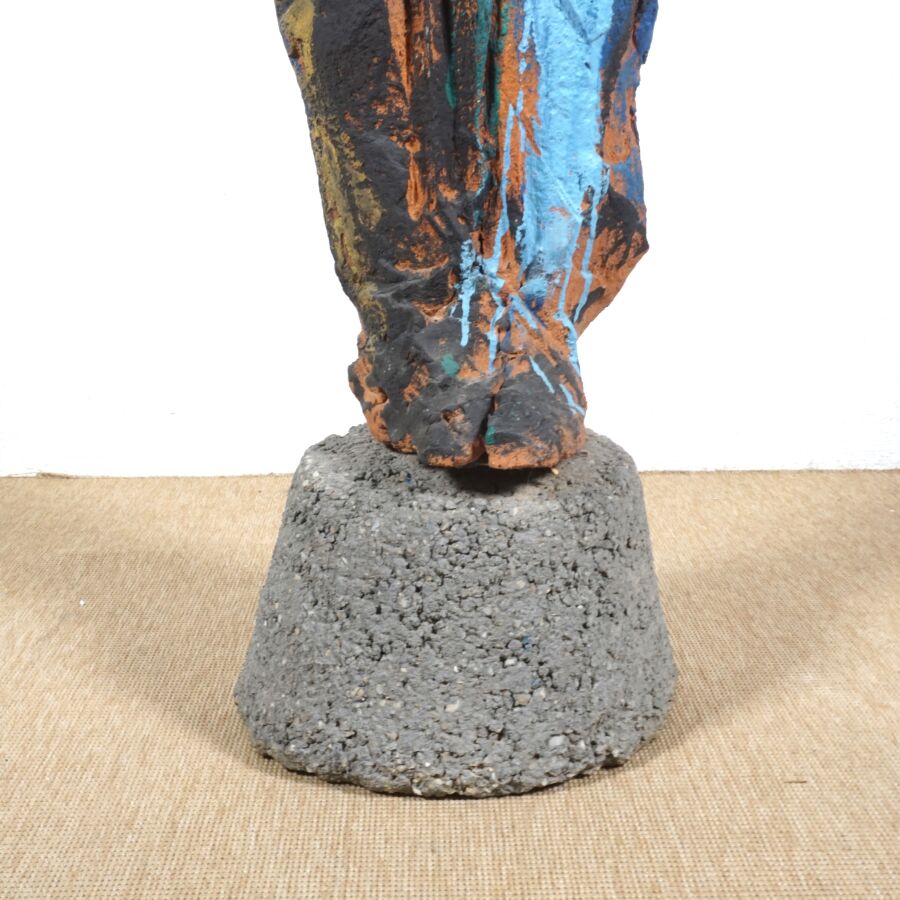 Jean-Noël LAVESVRE (1946), " Homme debout ", sculpture en terre cuite patinée, H. 157.5 cm (restauration à la tête).
