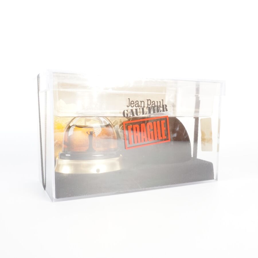 JEAN-PAUL GAULTIER : "Fragile", deux coffrets dont (1) Coffret voyage, contenant eau de parfum et son écrin et protection (25 ml) (non ouvert) et (1) Sac à accessoiriser, couleur noir, contenant eau de toilette, flacon vaporisateur (50 ml), Lait de parfum pour le corps (40 ml) et (1) Huile scintillante pour le corps (30 ml) (rayures au sac).