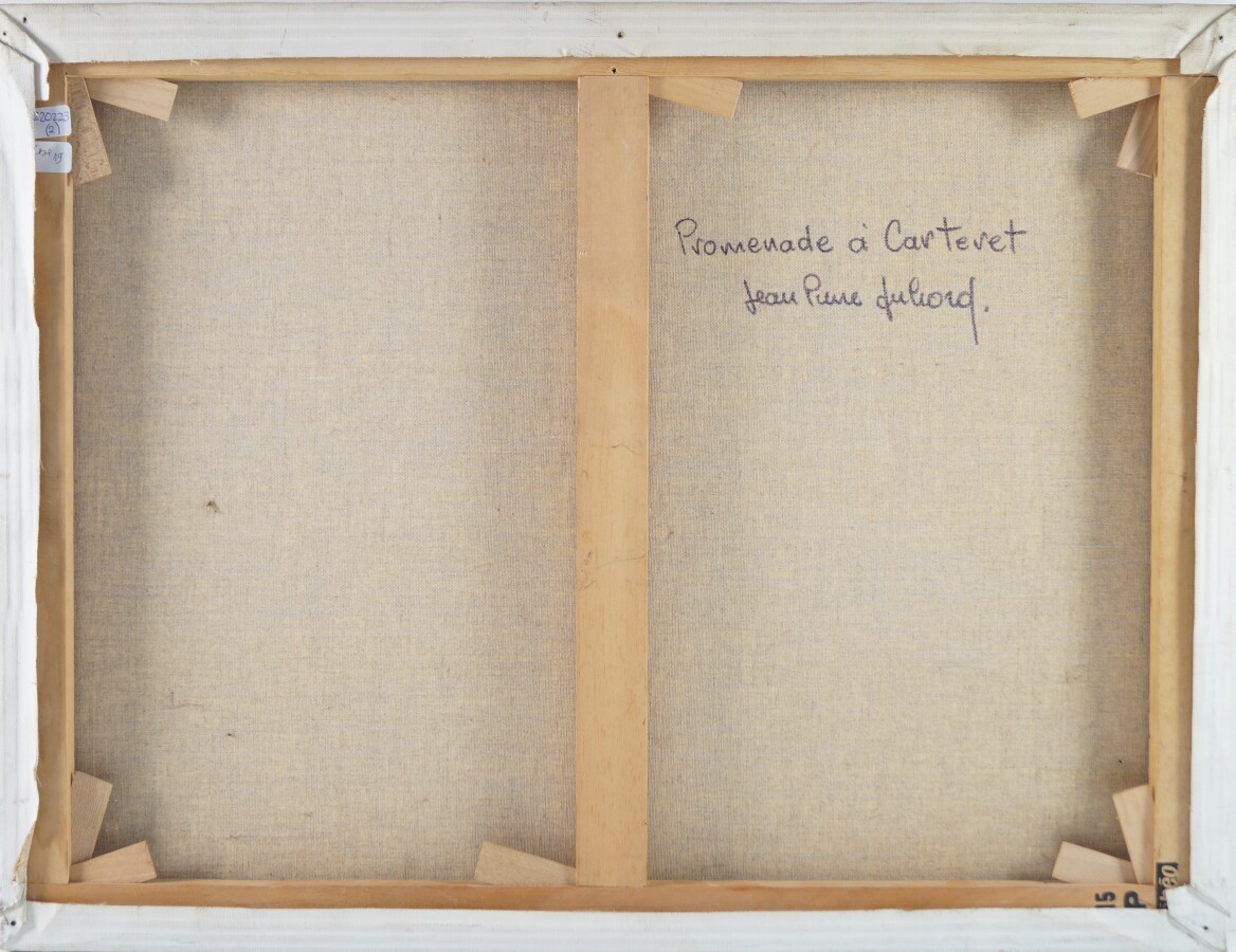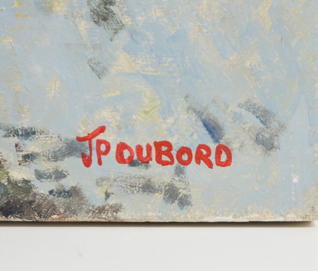 Jean-Pierre DUBORD (1949), "Promenade à Carteret", huile sur toile signée en bas à droite, titrée au dos, 50 x 65 cm (petites écaillures aux coins).