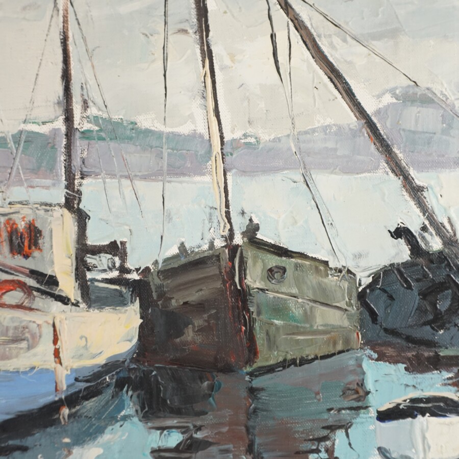 Jean-Pierre LE BRAS (1931-2017), "Bateaux de pêche au port", huile sur toile signée en bas à droite, 37 x 54 cm.