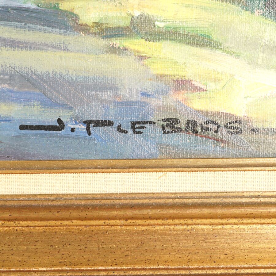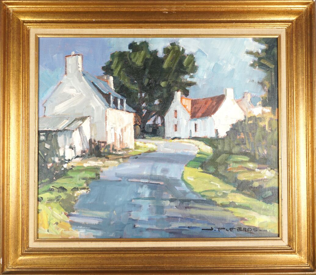 Jean-Pierre LE BRAS (1931-2017), "Rue de village (Bretagne)", huile sur toile signée en bas à droite, 46 x 55 cm.