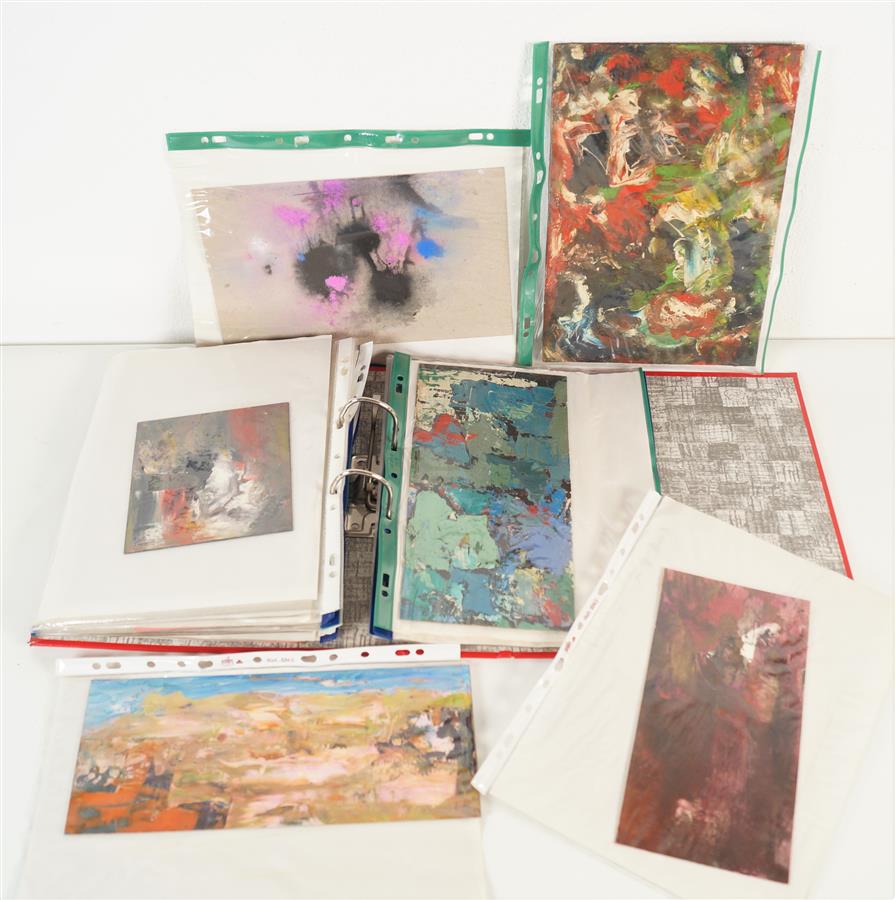Jean SIGNOVERT (1919-1981) : Un classeur comprenant environ 35 aquarelles ou dessins850 sur papier, huiles sur toile ou sur carton, dont personnages et abstractions, principalement signés, de 10 x 14 cm à 20 x 30 cm environ.