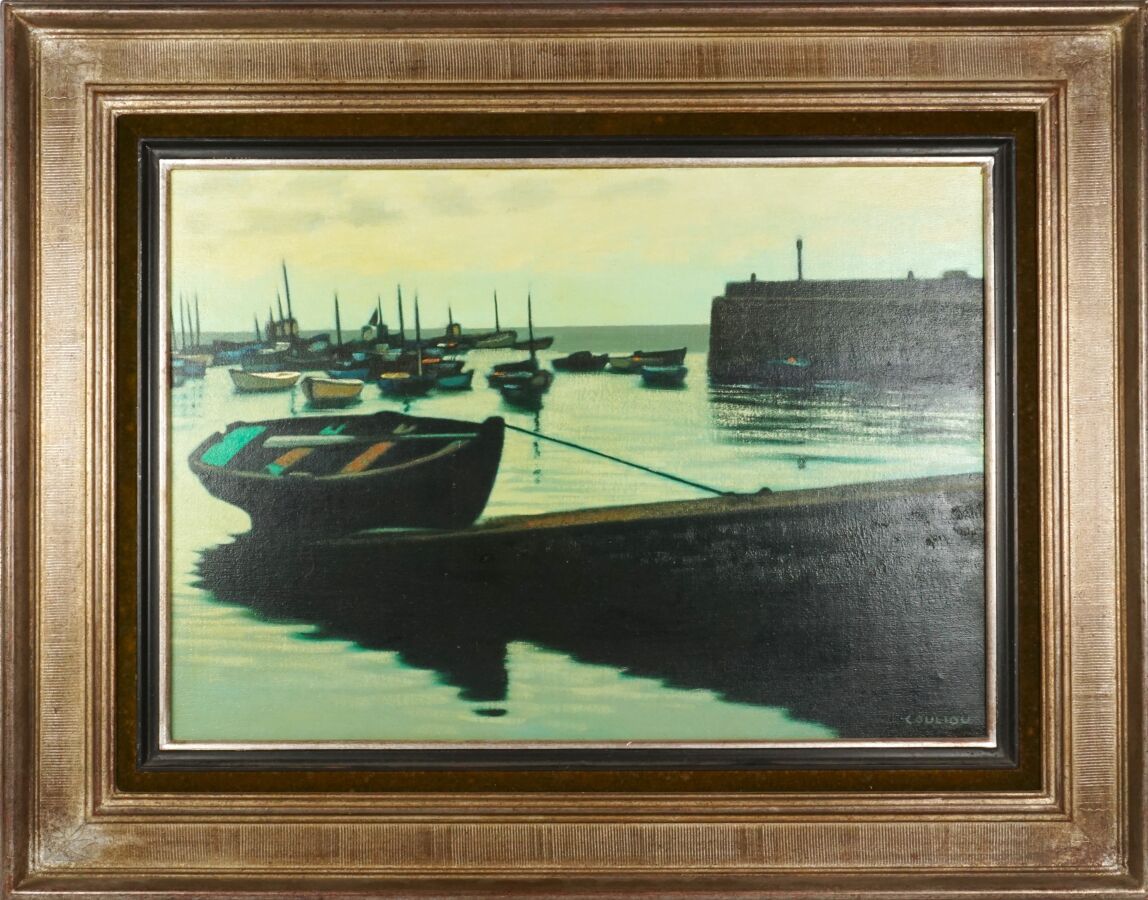 Jean-Yves COULIOU (1916-1995), "Le port de Lomener", huile sur toile signée en bas à droite, 46 x 65 cm.