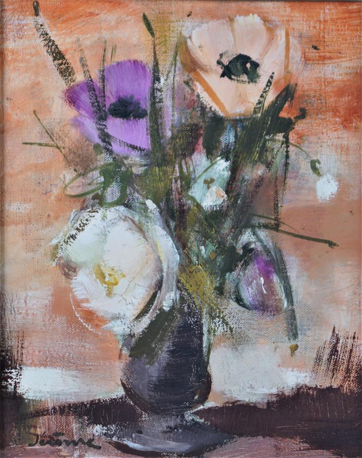 JÉROME (1946) "Bouquet d'anémones", huile sur toile signée en bas à gauche, 27 x 22 cm.