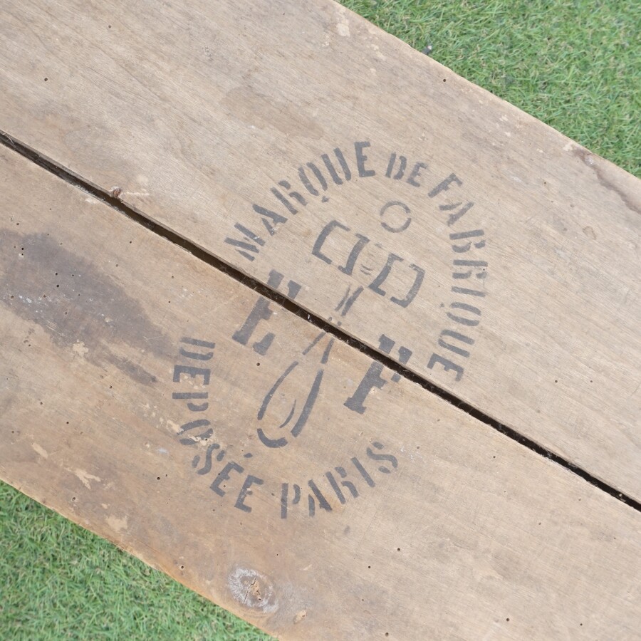 Jeu de croquet en bois, complet de ses éléments et de sa notice, marqué sur le couvercle "E.F" et porte une plaque émaillée sur l'un des côté "à la ménagère, Paris", début du 20ème siècle, présenté dans son coffret d'origine, L. 117 cm (quelques usures).