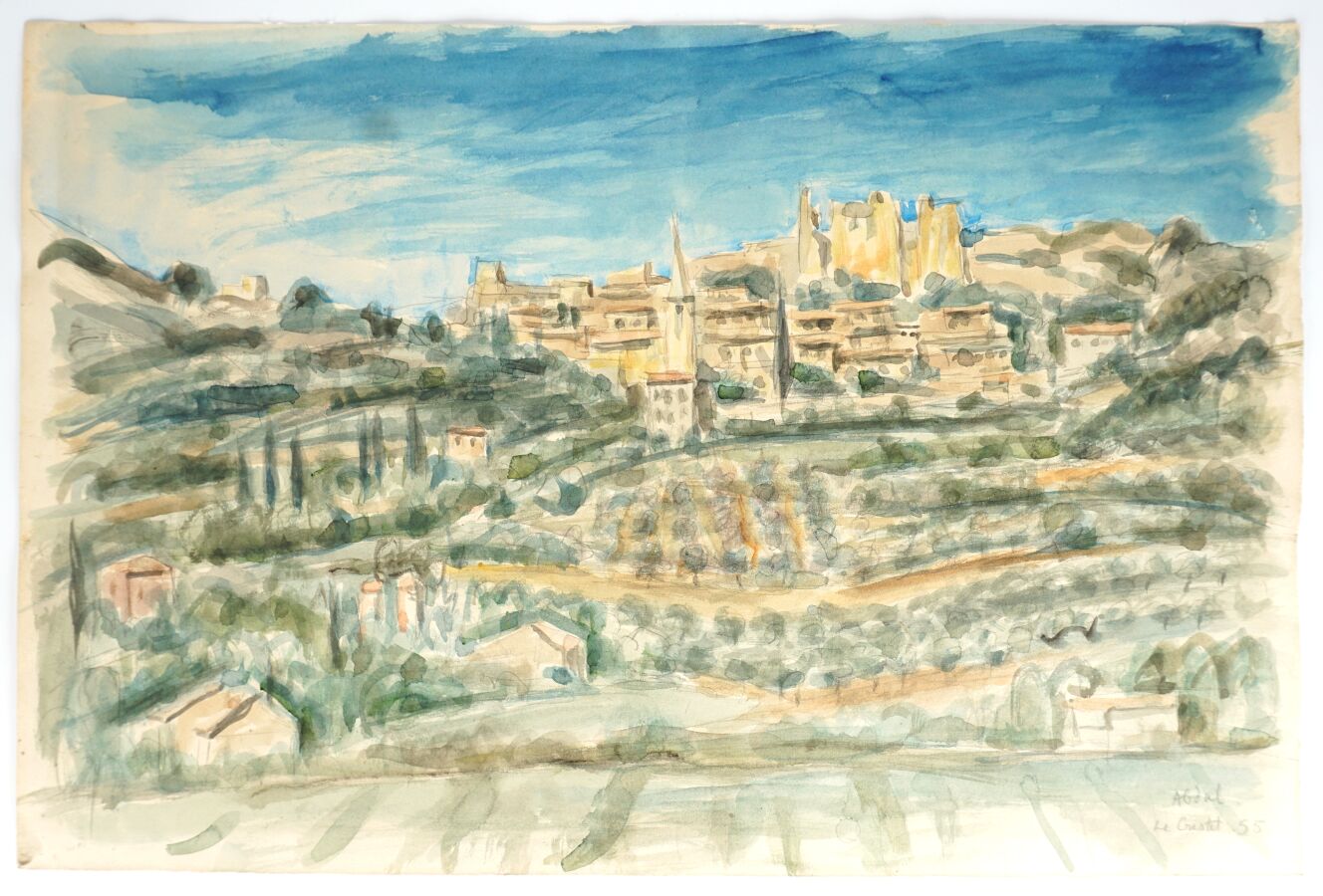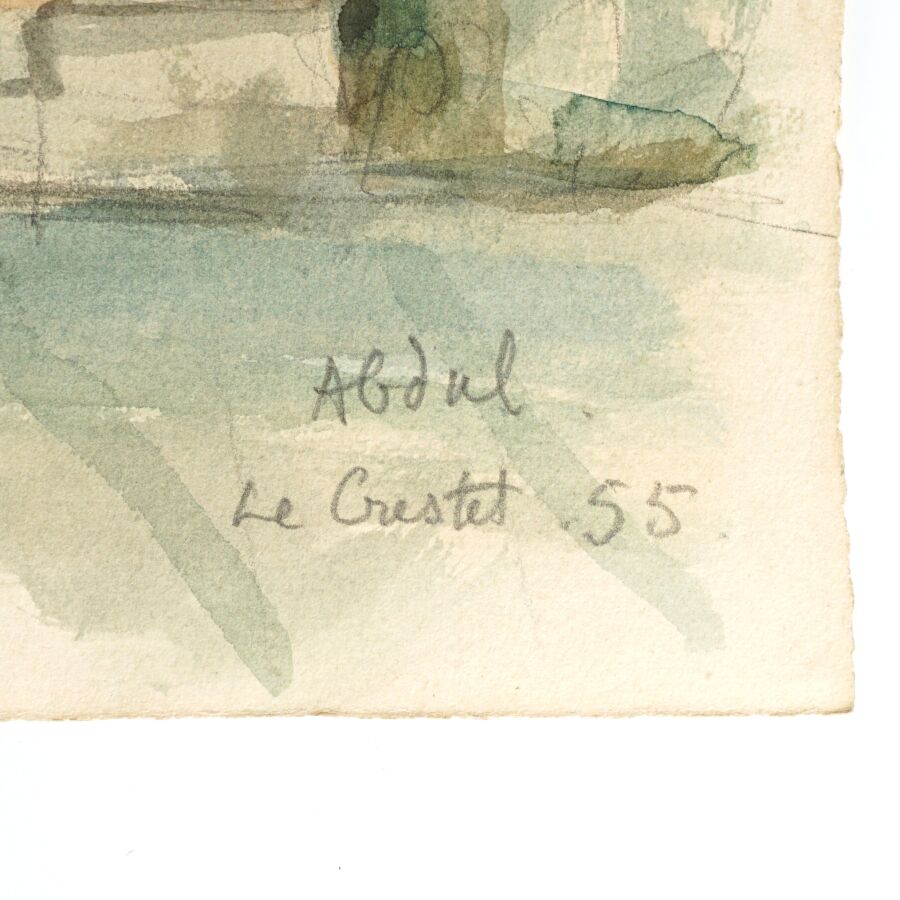 Jilani ABDELWAHEB (1890-1961), dit Beppo Abdelwhab alias Abdul, "Le Crestet, Vaucluse" 55, aquarelle sur papier, signée, datée et titrée en bas à droite, 33 x 50 cm. (petites déchirures en haut à droite)