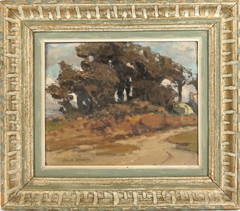 Jim Eugène SEVELLEC (1897-1971), "Le bosquet", huile sur panneau signée en bas à gauche, 22 x 27 cm.