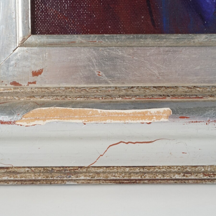 Joaquim HIDALGO PAGES (1933-2011), "Femme en bleu" 87, huile sur toile signée en bas à gauche, signée, datée et titrée au dos, 46.5 x 38.5 cm (petit accident au cadre).