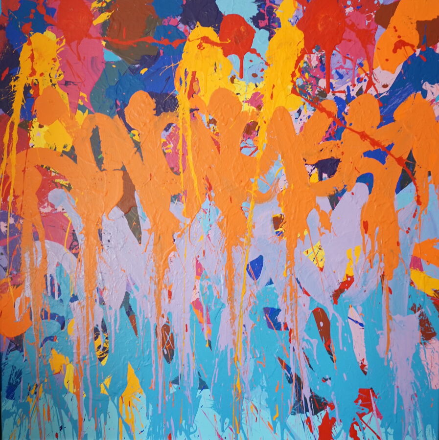 JONONE (1963), "Made in China - Shanghai - Summer skies in Shanghai " 2015, acrylique sur toile, signée, datée et titrée au dos, 100 x 100 cm. (Présenté avec un certificat).