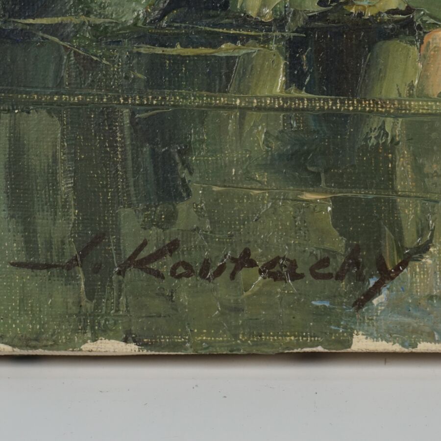 Joseph KOUTACHY (1907-?), "Paysage lacustre", huile sur toile signée en bas à gauche, 27 x 41 cm.