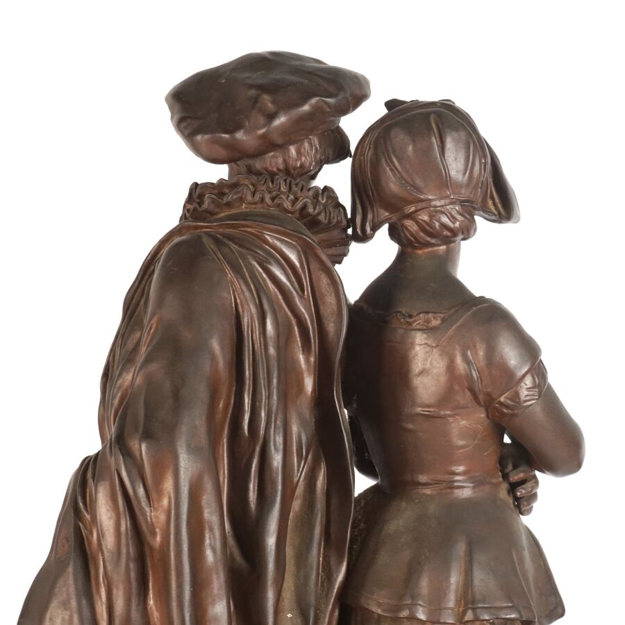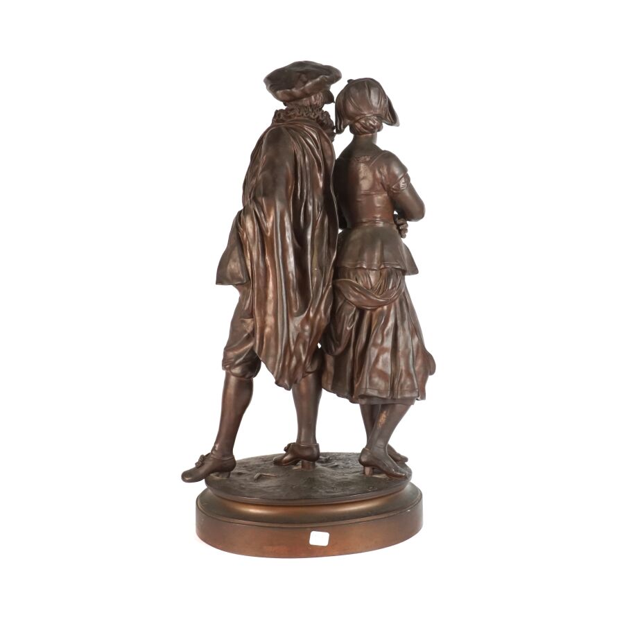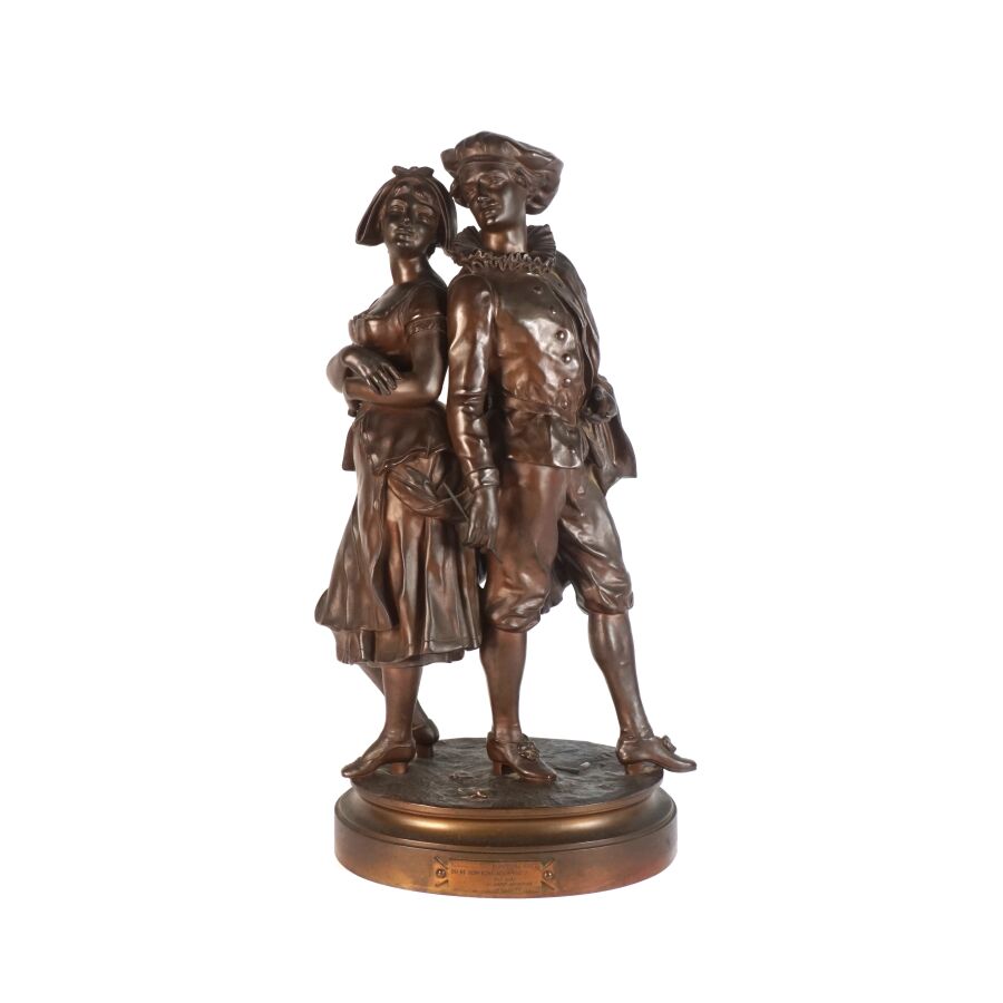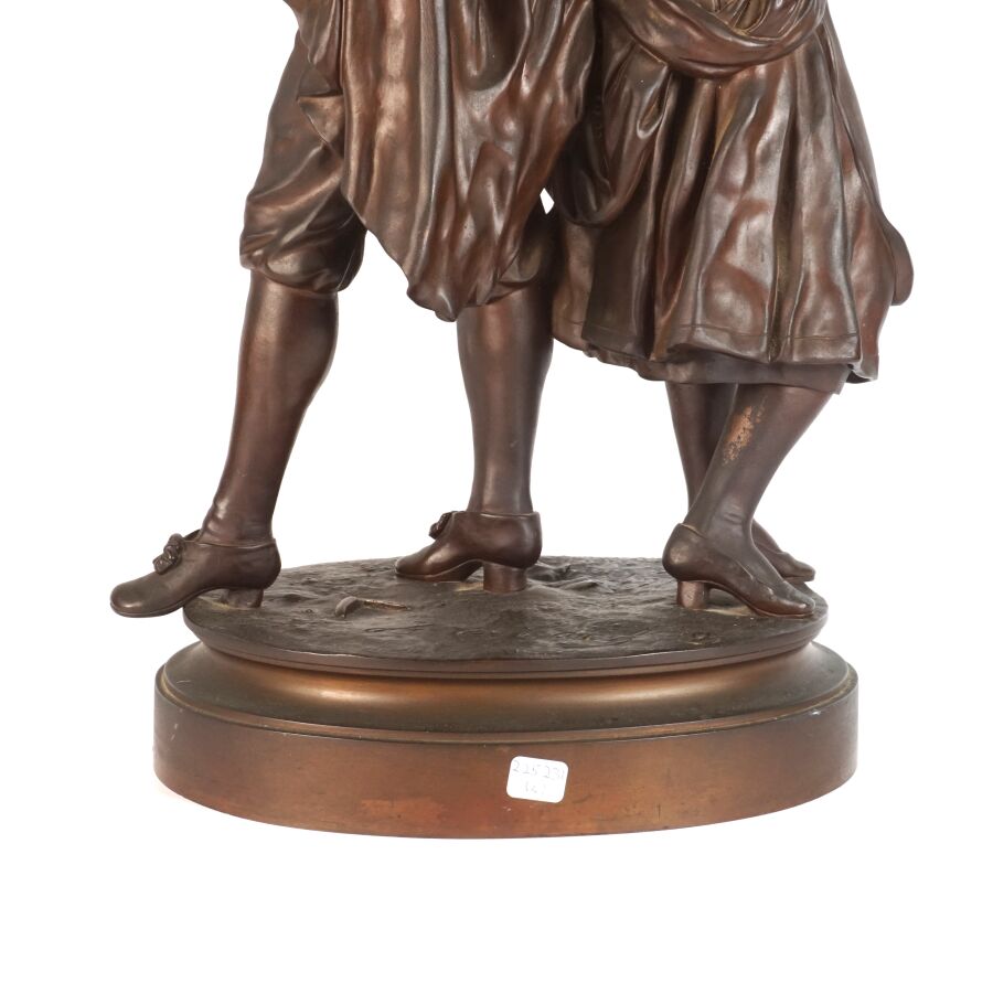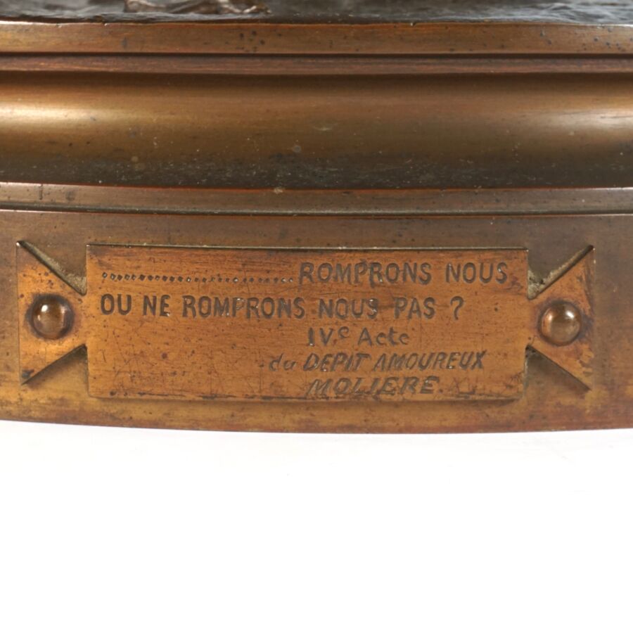 Joseph OSBACH (1851-1898), "Romprons-nous ou ne romprons nous pas - IVème acte du dépit amoureux - Molière", sculpture en bronze à patine brune, signée sur la terrasse, inscription "A. Bagset éditeur", porte une plaque titrée sur la base circulaire, H. 62 cm.