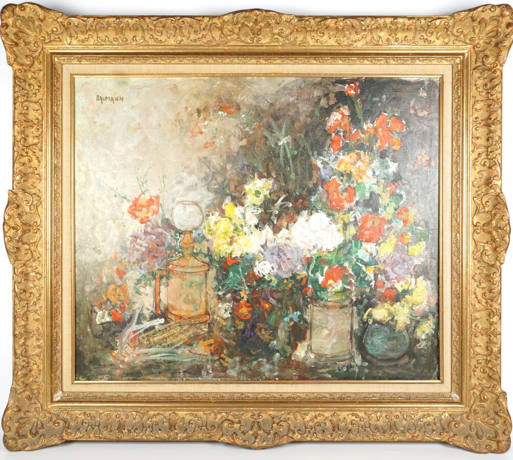 Joseph RAUMANN (1908-1999), "Fleurs", huile sur toile signée en haut à gauche, contresignée et titrée au dos, 50 x 65 cm.