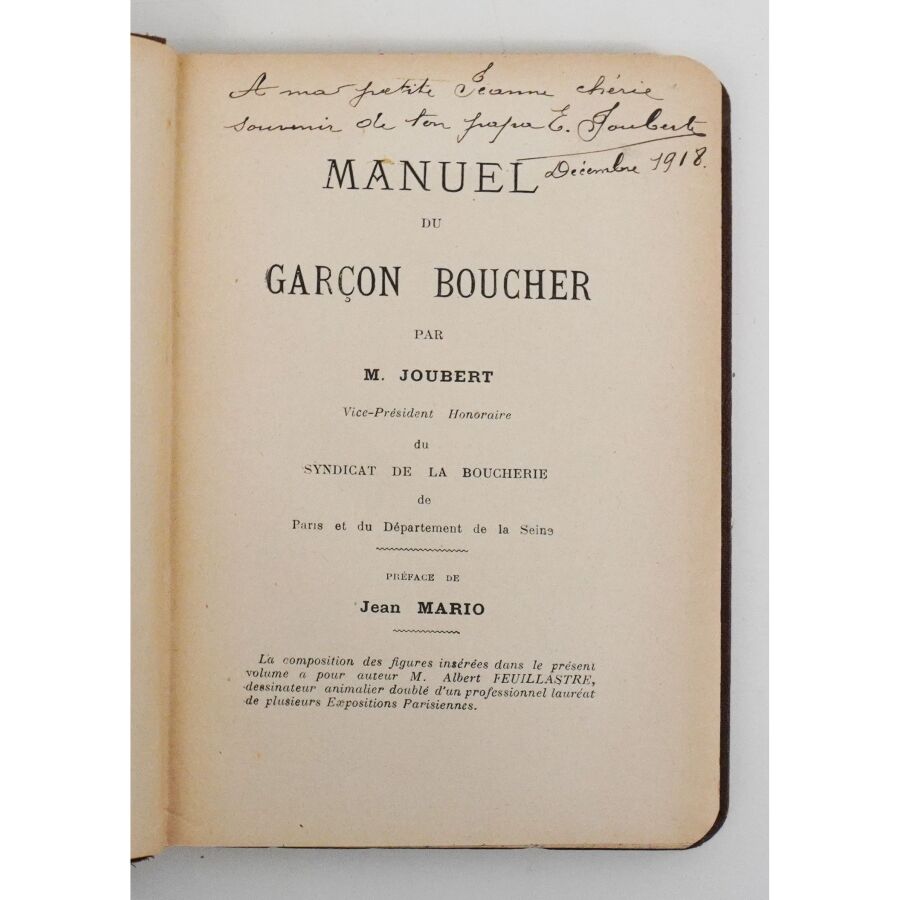 JOUBERT (E.). Manuel du garçon boucher. [Paris], sn (Impr. Pradier), 1918. In-8 cartonnage éditeur, titre doré sur le plat (ors passés).