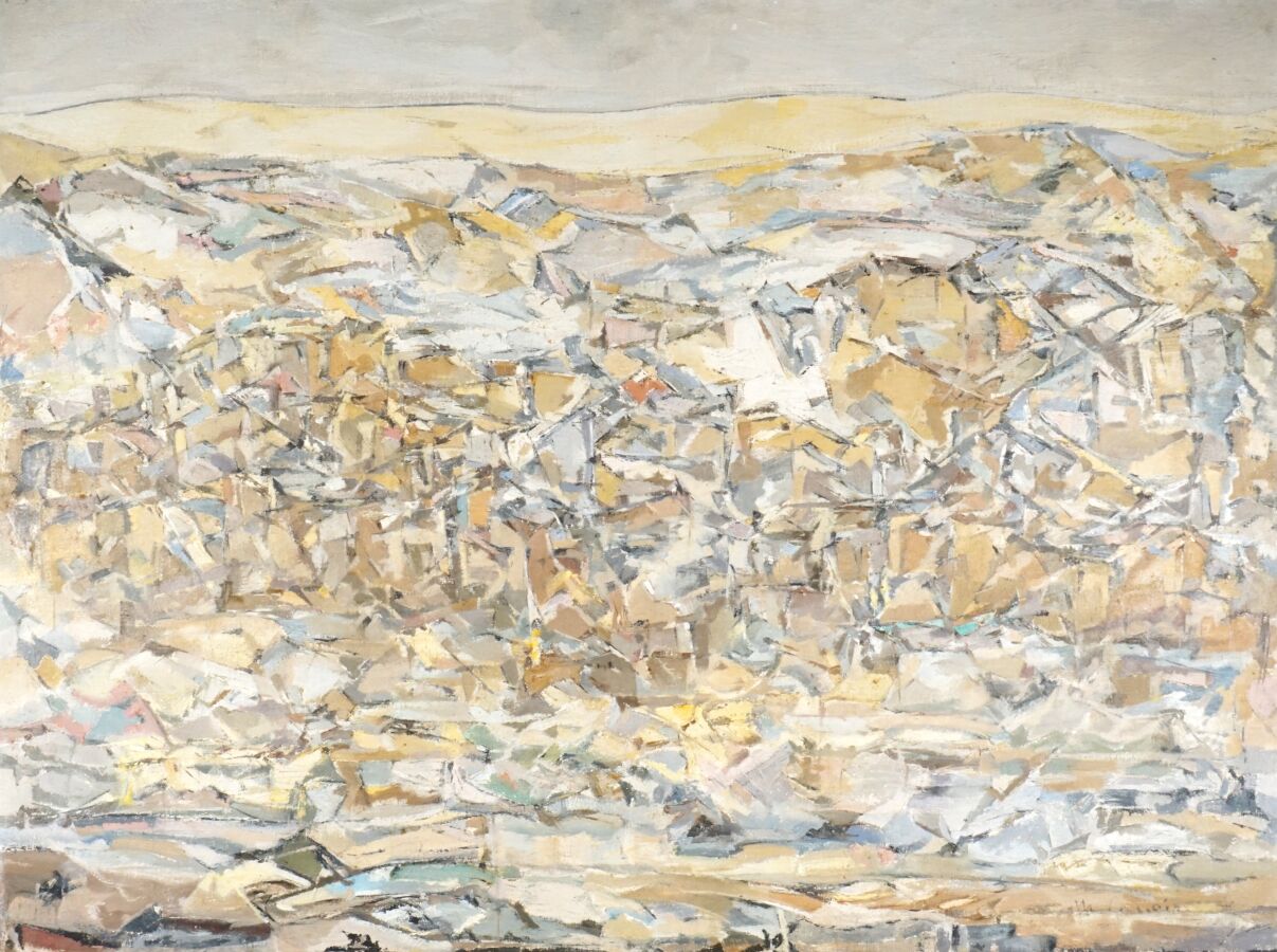 Juan Manuel DIAZ CANEJA (1905-1988), "Madrid", huile sur toile, signée en bas à droite, contresignée, titrée et numérotée 10 au dos, 97 x 130 cm.