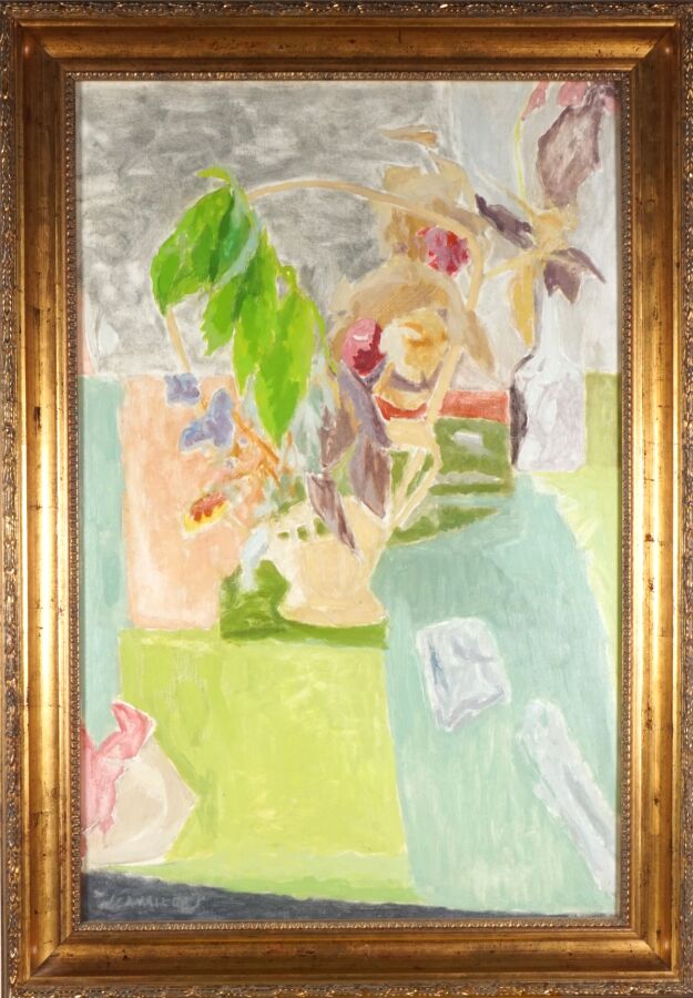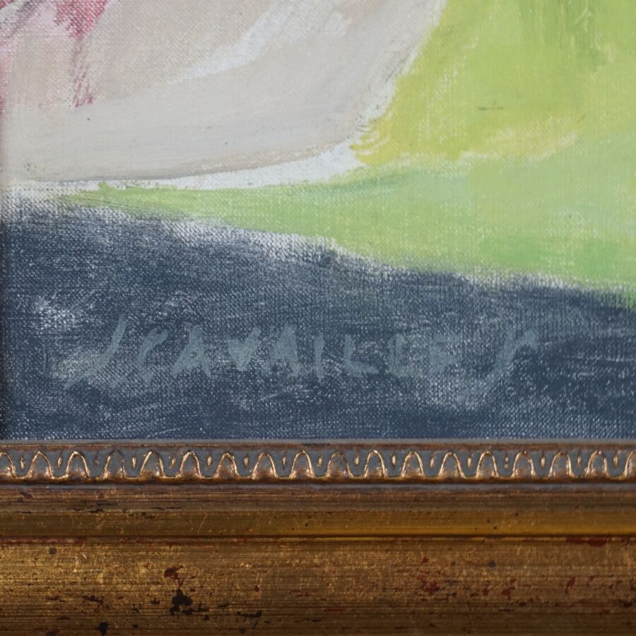 Jules CAVAILLES (1901-1977), "Bouquet de fleurs", huile sur toile signée en bas à gauche, tampon de la vente du fond d'atelier au revers du châssis, 92 x 60 cm.