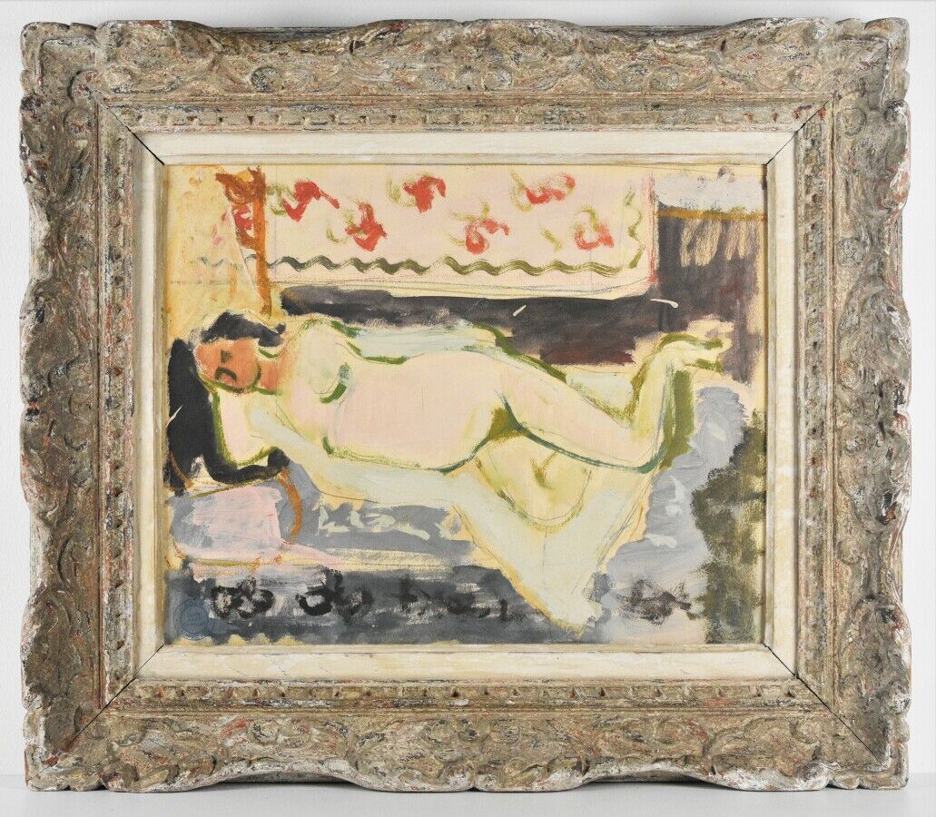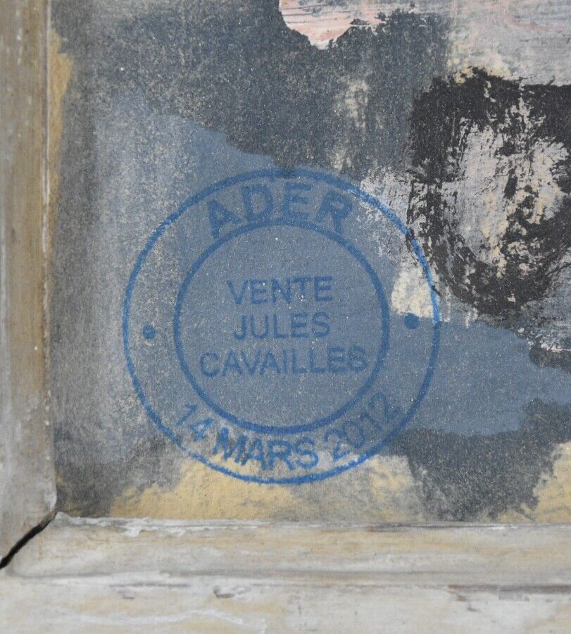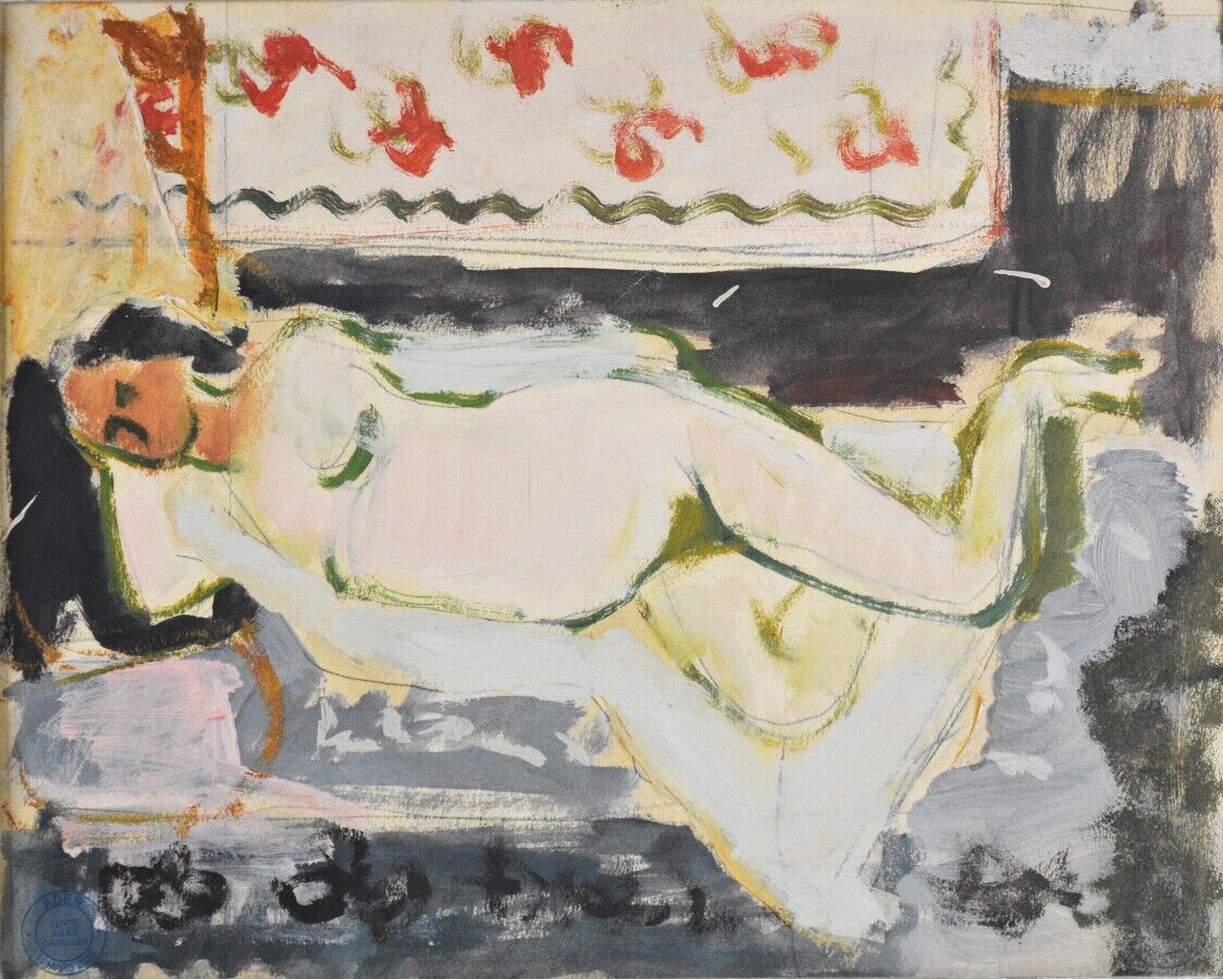 Jules CAVAILLES (1901-1977), "Femme nue allongée", gouache sur papier marouflée sur panneau, porte le cachet de la vente Jules Cavaillès du 14 mars 2012 par ADER en bas à gauche et à droite, 33.5 x 41.5 cm (infime relief au papier en haut à droite).