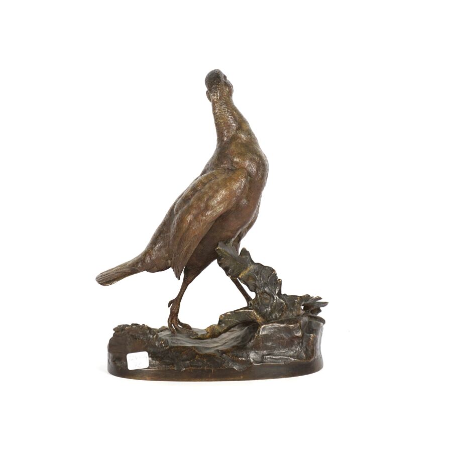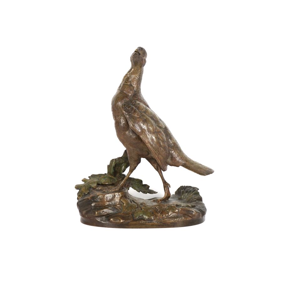 Jules MOIGNIEZ (1835-1894), "Poule faisane", sujet en bronze à patine médaille, signé en creux sur la terrasse, H. 31 cm. L. 22.5 cm.