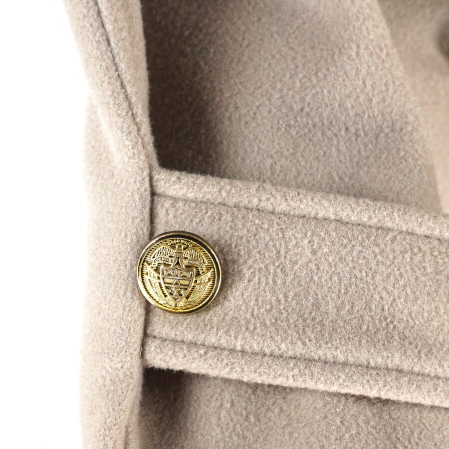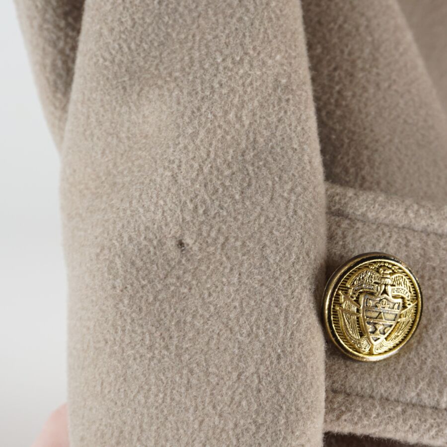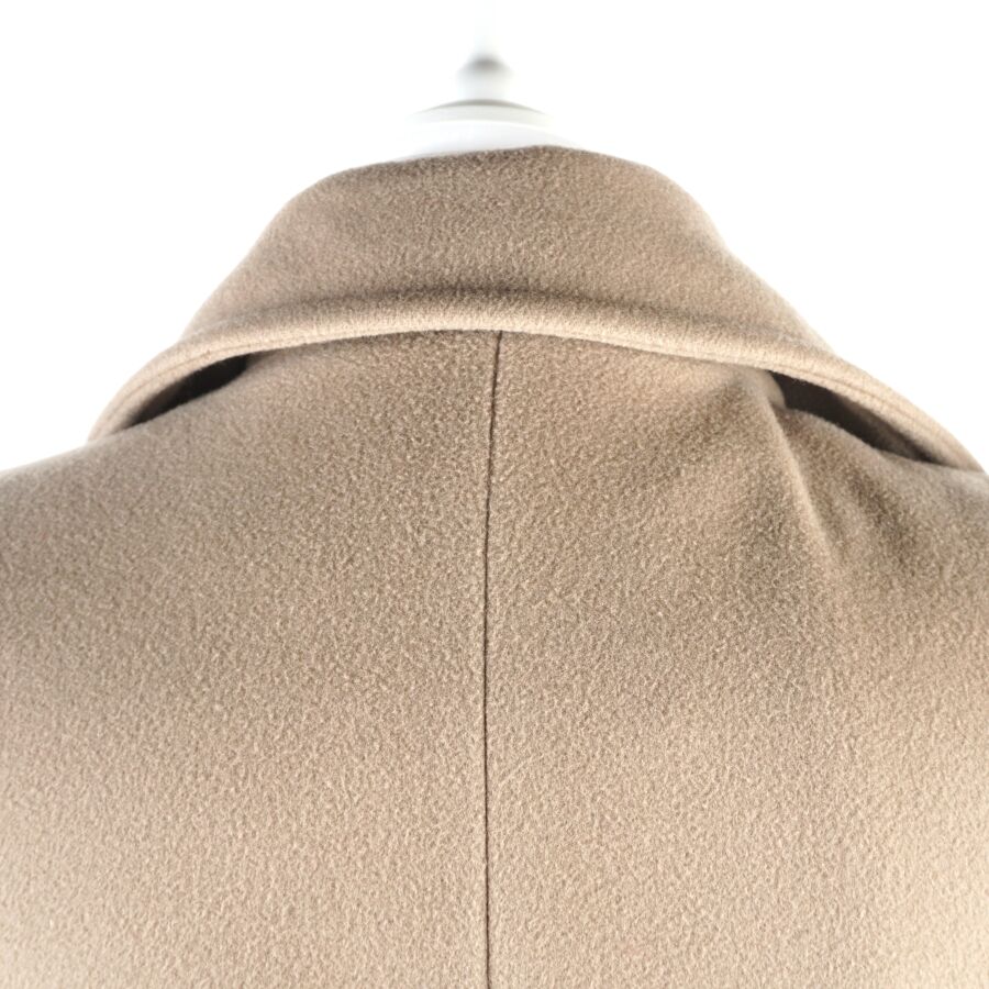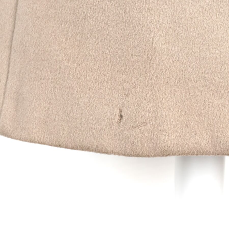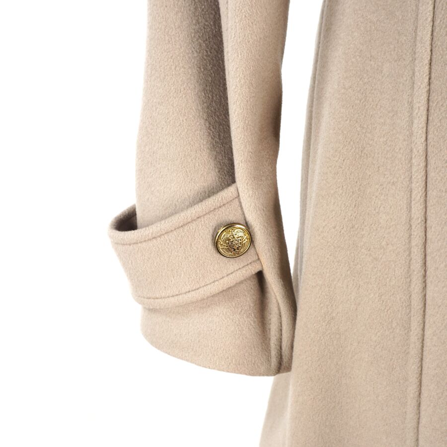 JUST CAVALLI : Manteau en laine et cachemire marron - beige, col dit tailleur, fermeture à l'avant par trois boutons en métal doré, manches longues avec boutons aux extrémités, deux poches basses latérales, doublure logotée, taille indiquée 40, L. Totale : 100 cm (quelques traces, petits accrocs).