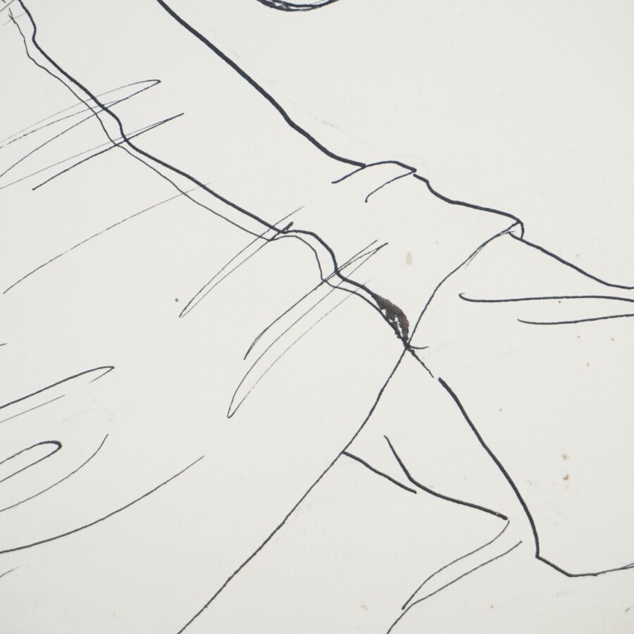 Karl LAGERFELD (1938-2019), "Jeune homme à la lecture", dessin à l'encre, non signé, 38 x 45.5 cm (petites taches et petits trous de punaises).