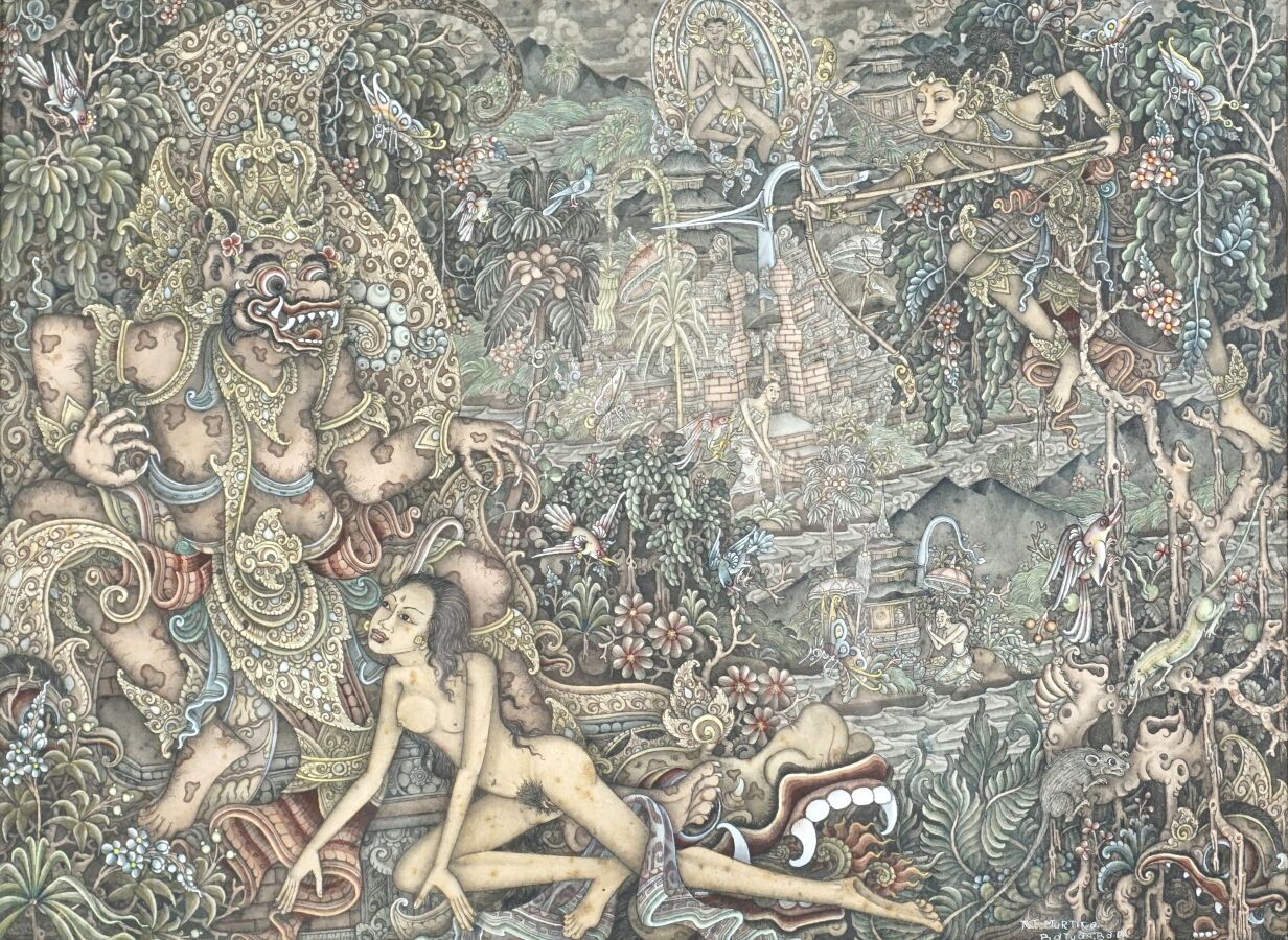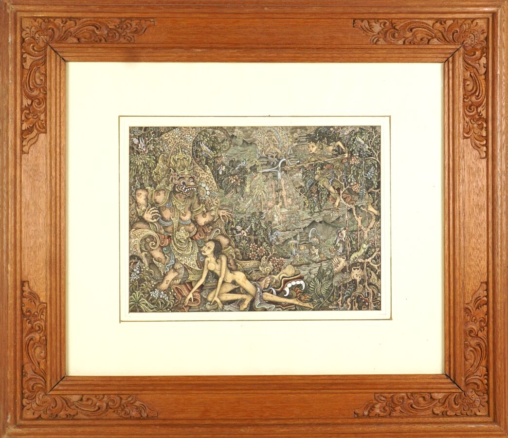 Ketut MURTIKA (1952-1995), "Scène du Ramayana", gouache sur papier signée en bas à droite, 19 x 25.8 cm.