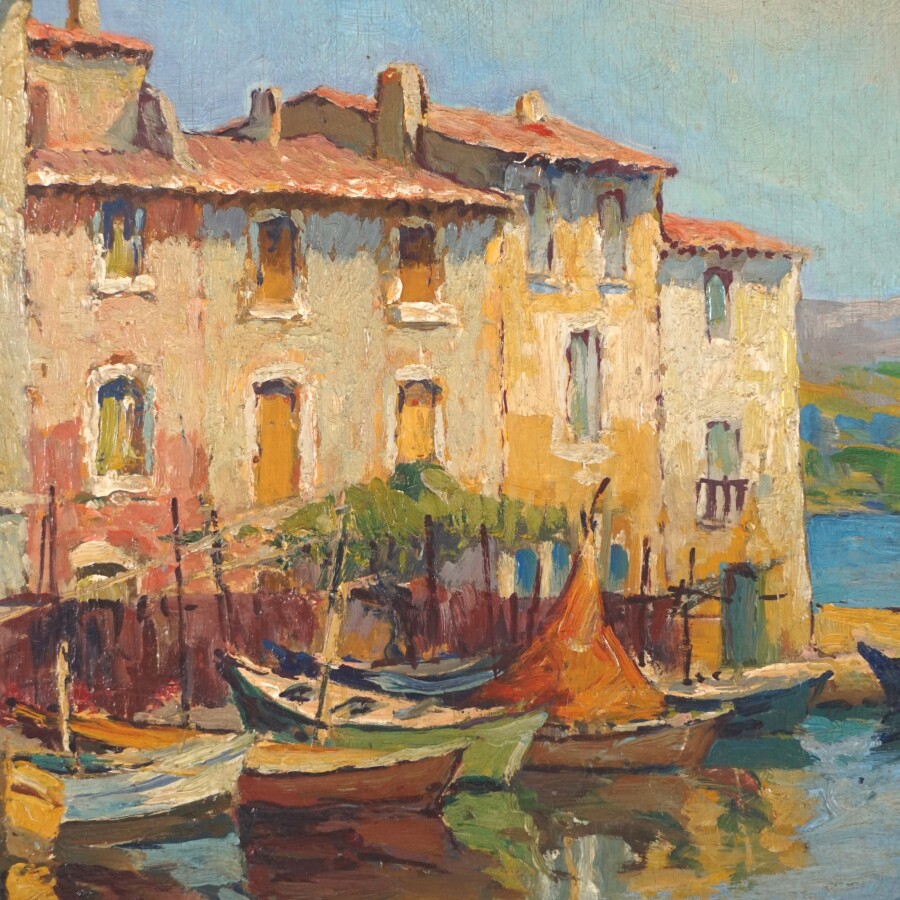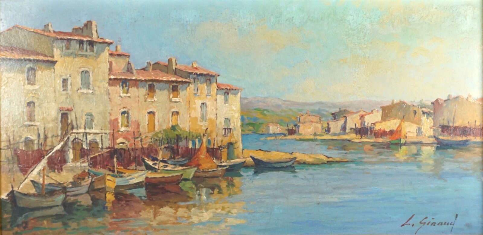 L. GIRAUD (XXe), "Venise", huile sur contreplaqué, signée en bas à droite, 43 x 89 cm (à vue).