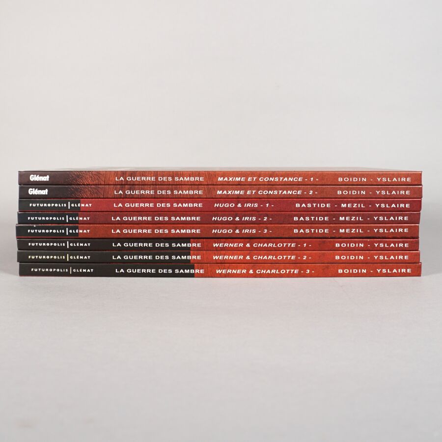 LA GUERRE DES SAMBRE, éd. GLÉNAT : Ensemble de 8 albums comprenant "Maxime et Constance" (tomes 1 et 2), "Hugo & Iris" (tomes 1 à 3) et "Werner & Charlotte" (tomes 1 à 3).