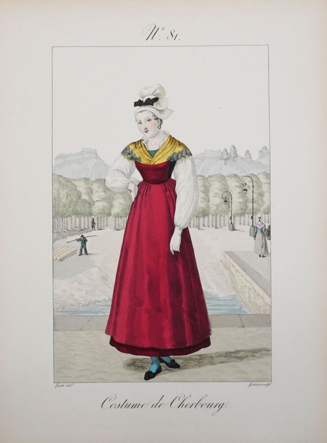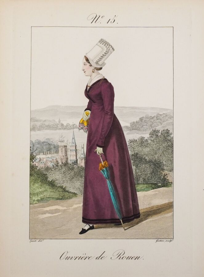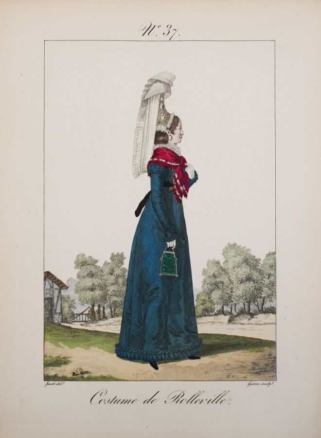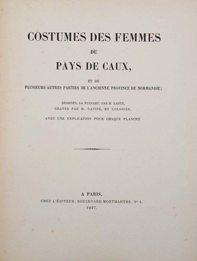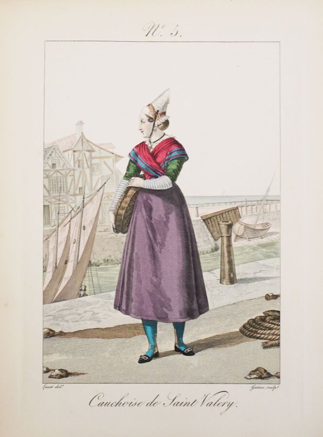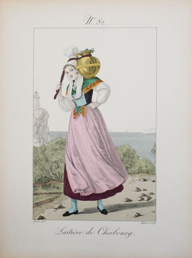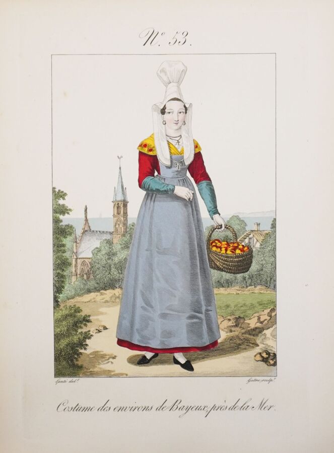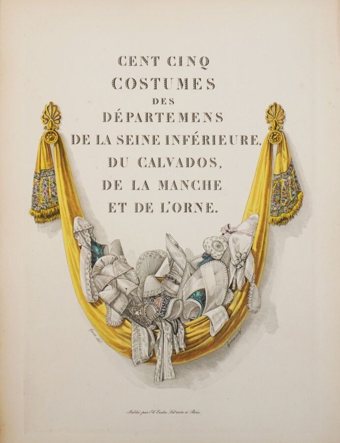 Belle réimpression sur les cuivres originaux de ce recueil de costumes normands féminins. L'ouvrage est illustré d'un frontispice et de 105 planches coloriées, gravées par Gatine et dessinées par Louis-Marie Lanté et Benoît Pécheux. Descriptif des planches par Pierre Leboux de La Mésangère.