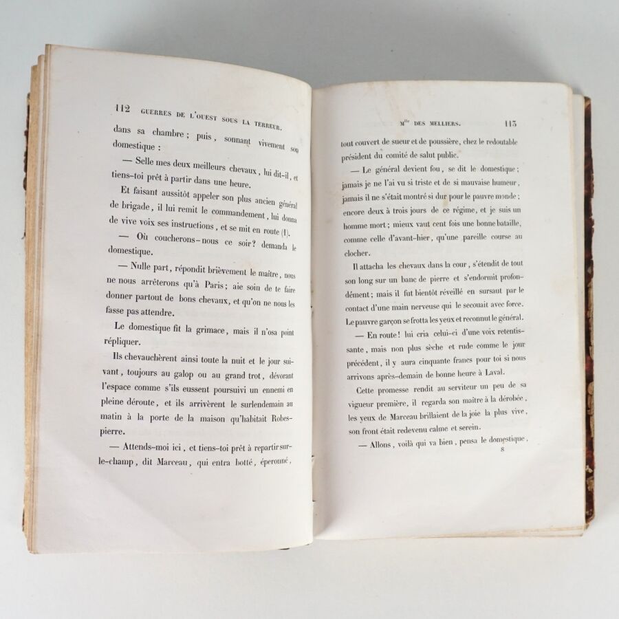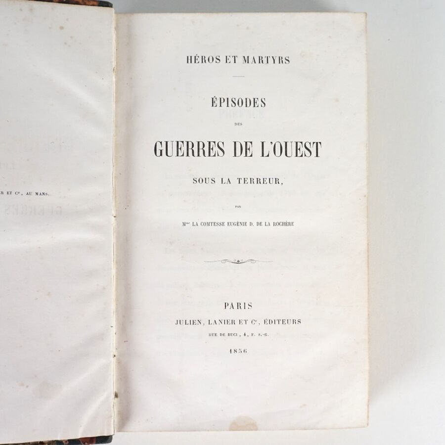 LA ROCHÈRE (Comtesse Eugénie D. de). Episodes des Guerres de l'Ouest sous la Terreur. Paris, Julien, Lanier & Cie, 1856. In-8 demi-veau brun, dos à nerfs orné, titre doré (reliure de l'époque). Qqs petites usures.