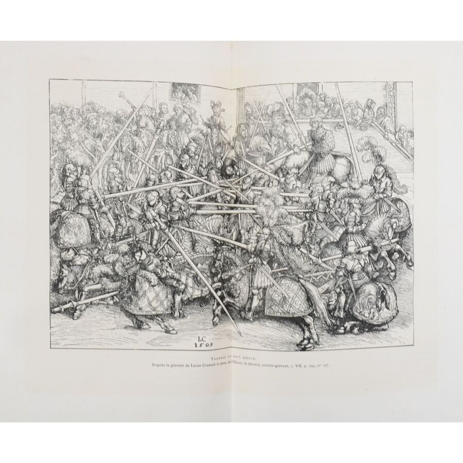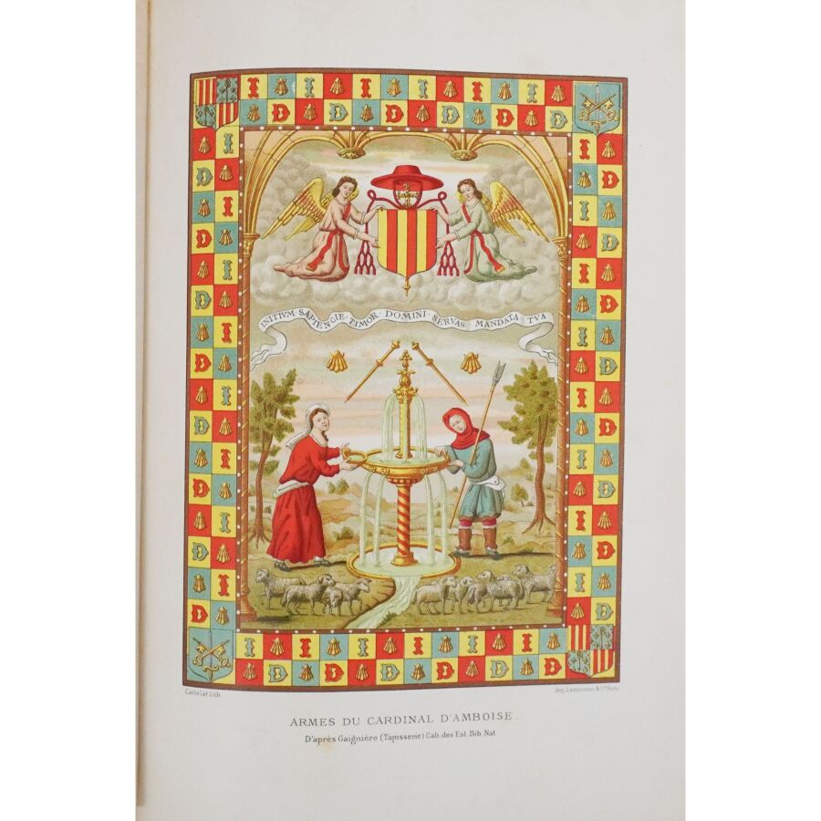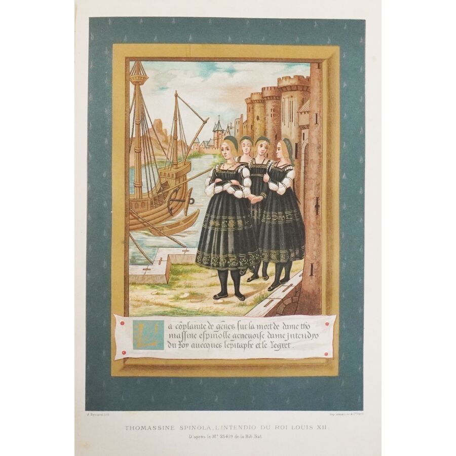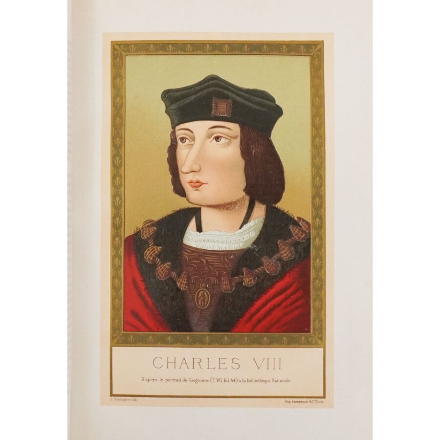 LACROIX (Paul). Louis XII et Anne de Bretagne. Chronique de l'histoire de France. Ouvrage illustré de 14 chromolithographies, 15 grandes gravures hors texte et d'environ 200 dessins dans le texte d'après les originaux de l'époque. Paris, Hurtrel, 1882. Fort in-4 demi-chagrin rouge à coins, dos à nerfs richement orné, filet doré, tr. dorés (reliure de l'éditeur par Garidel). Coiffes et coins frottés. Qqs rousseurs sur les gardes. Bon ex.