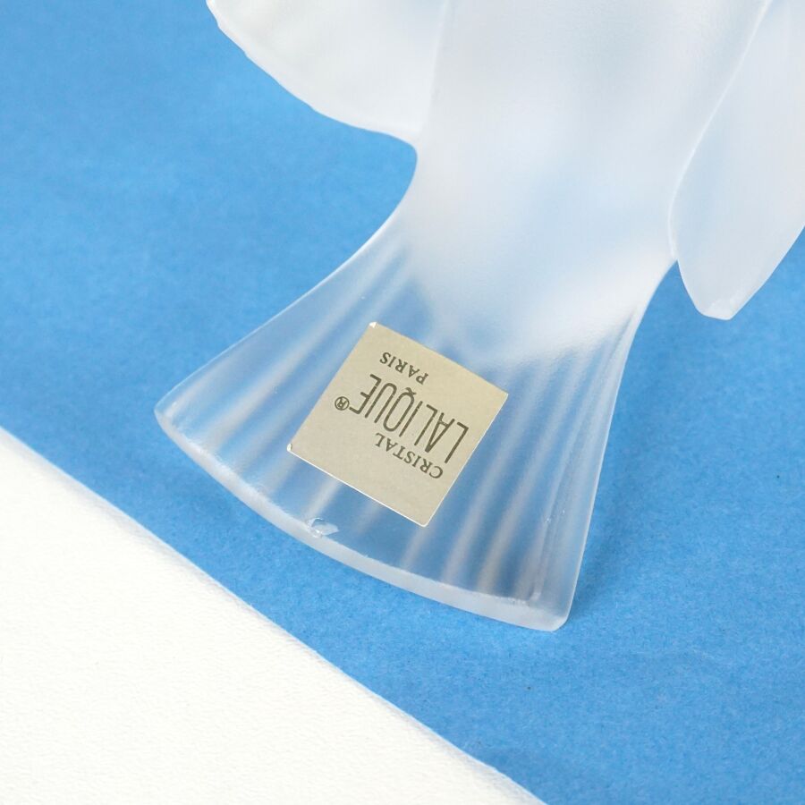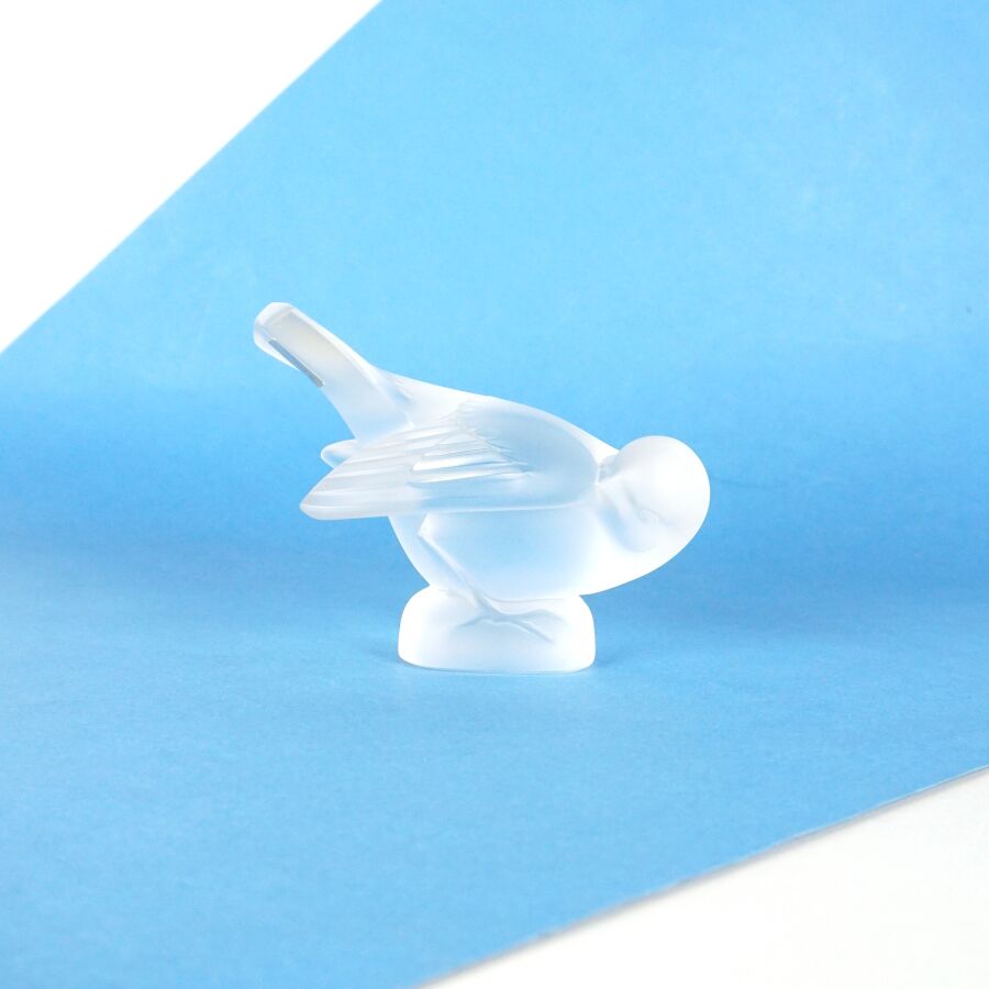LALIQUE : "Moineau", sujet en cristal moulé - pressé satiné, signé à la pointe dessous, étiquette sous la queue, H. 8.5 cm. L. 10 cm.